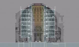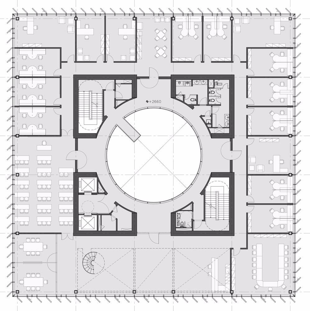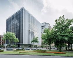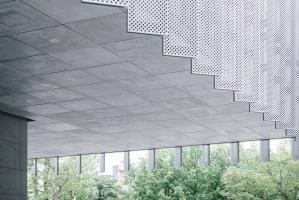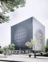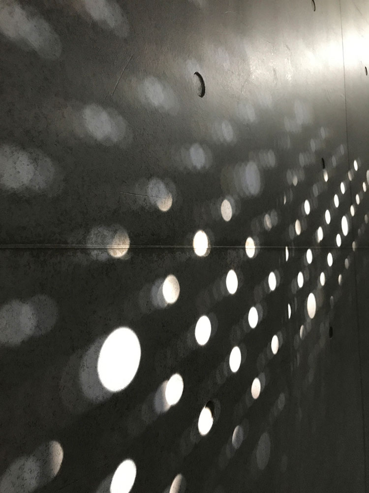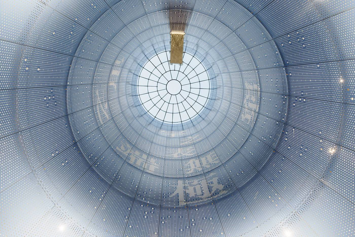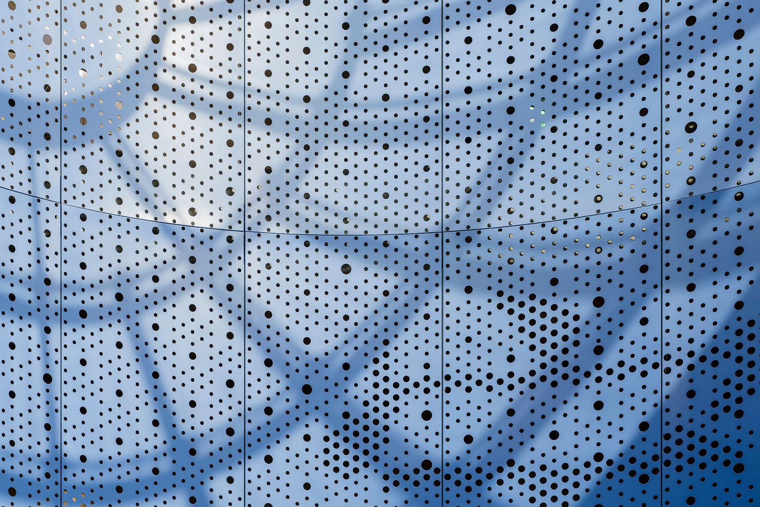 并以「隱含的球體」作為立面設(shè)計(jì)概念,由垂直向度不同寬窄序列漸進(jìn)的遮陽(yáng)板創(chuàng)造出逐漸現(xiàn)型的天圓,當(dāng)人們移動(dòng)觀看時(shí),即可感受到立面動(dòng)態(tài)、漸變的視覺(jué)經(jīng)驗(yàn)。