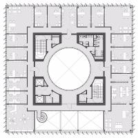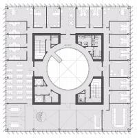 二層至八層作為研究室使用,于七層設(shè)置挑臺(tái),提供日常學(xué)術(shù)研究人員一處身心休憩平臺(tái)。