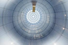 外在隱涵的方圓之中,挑高38米的觀月中庭天井,一如羅馬萬(wàn)神殿的高度,連通室內(nèi)外自然的流動(dòng),讓內(nèi)部使用者能直接感受到外部自然環(huán)境的晴雨、晝夜。