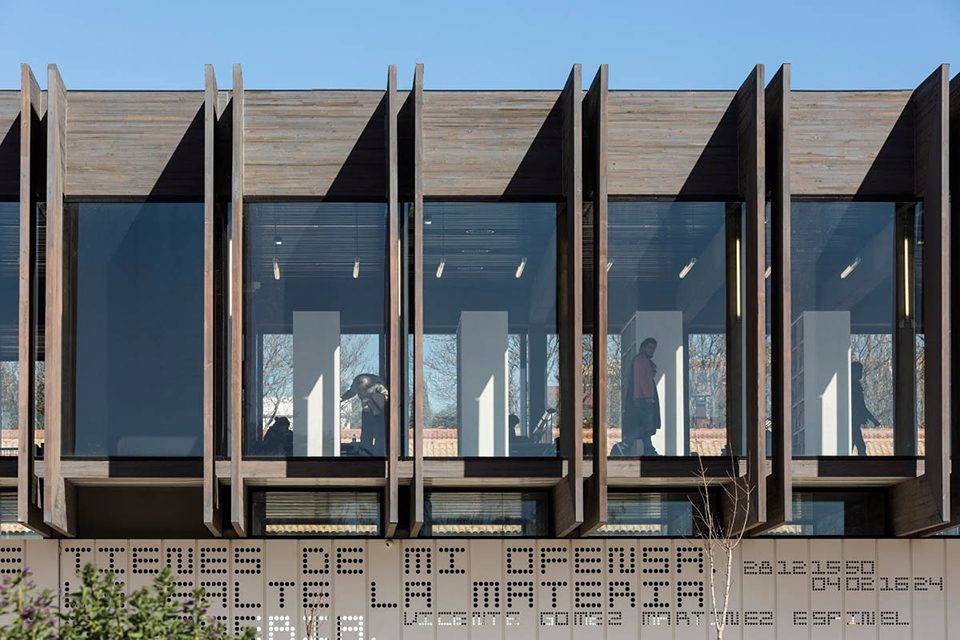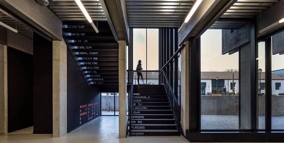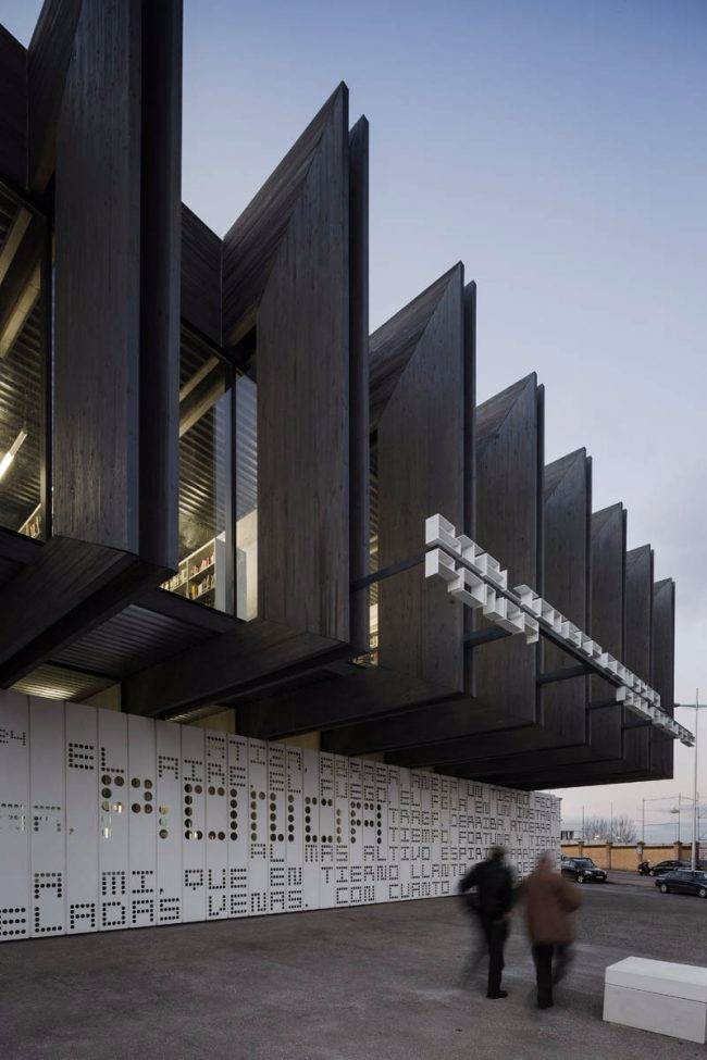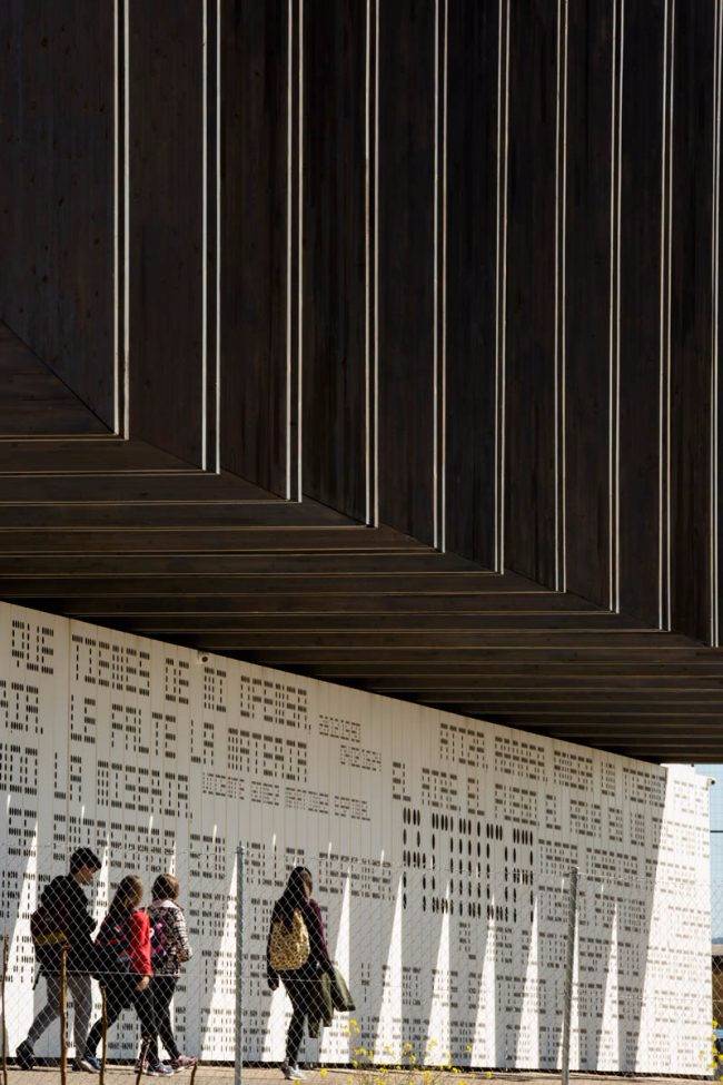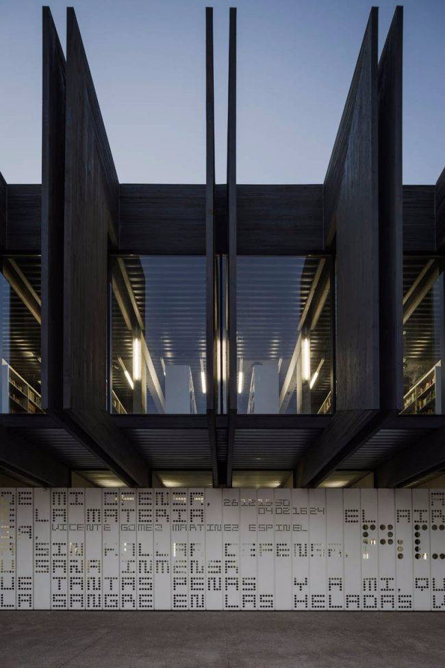 這項(xiàng)設(shè)計(jì)與建筑中的其他部分形成了良好的融合。南立面的墻壁上以打孔的方式呈現(xiàn)了當(dāng)?shù)刈骷襐icente Espinel的詩(shī)句。