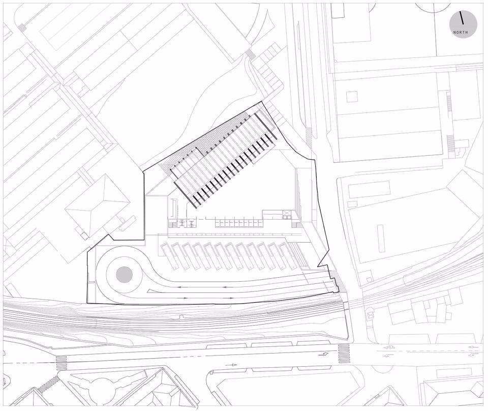項(xiàng)目中最關(guān)鍵的一個(gè)因素是“縮短透視”:不論是從隆達(dá)大街還是鐵道附近的主路上看,所有視覺上的特征均是由片段化的單元構(gòu)成。整個(gè)建筑的結(jié)構(gòu)是由一系列單獨(dú)的骨架單元構(gòu)成,該結(jié)構(gòu)帶來(lái)了兩種不同尺度的視覺游戲:從遠(yuǎn)處看,縮短的透視構(gòu)成了堅(jiān)固的、百葉窗般的觀感,在為建筑賦予顯著辨識(shí)度的同時(shí)強(qiáng)調(diào)出骨架之間的透明度。
