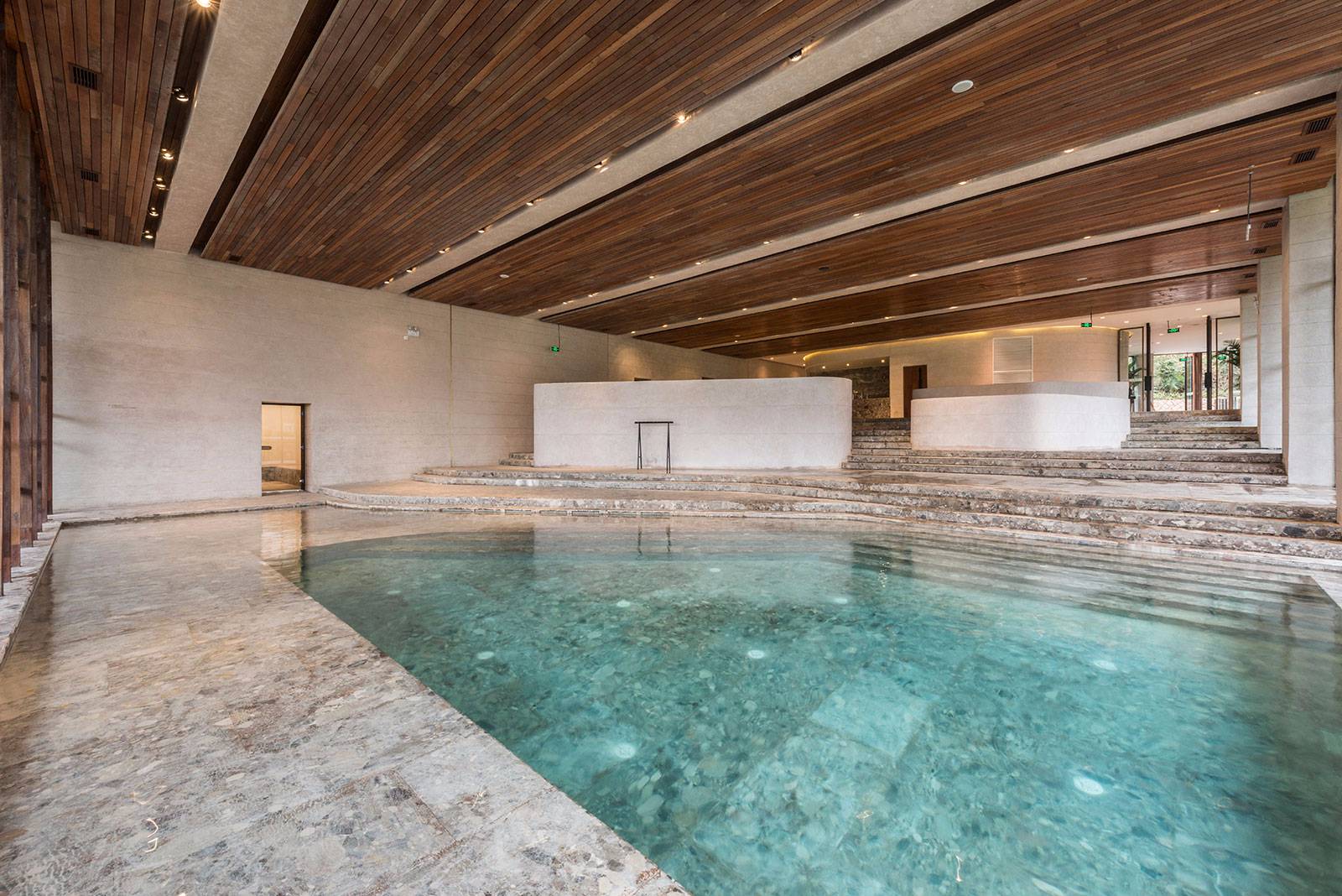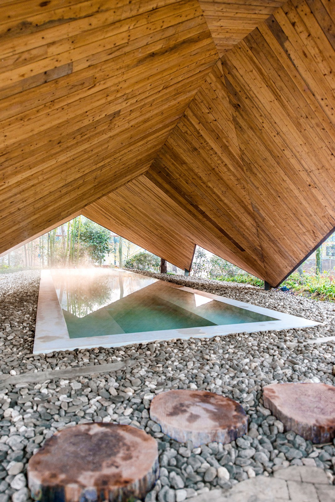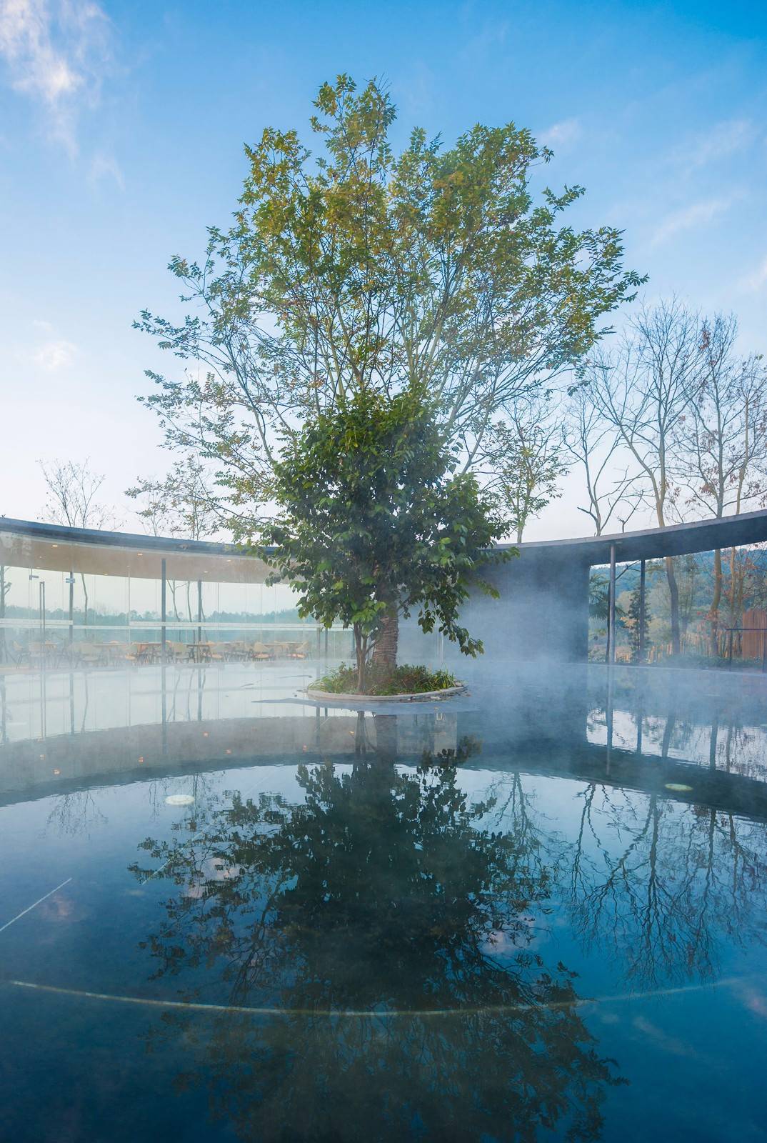 浮生御溫泉度假村坐落在四川北部羅浮山腳下。四周有綠樹環(huán)繞和寺廟點(diǎn)綴。這是一個(gè)由水塑造而成的場(chǎng)地。河流蜿蜒過村莊,還有來(lái)自地下熱水井而自然溢出的溫泉。這里是中國(guó)傳統(tǒng)的溫泉區(qū)域之一。
