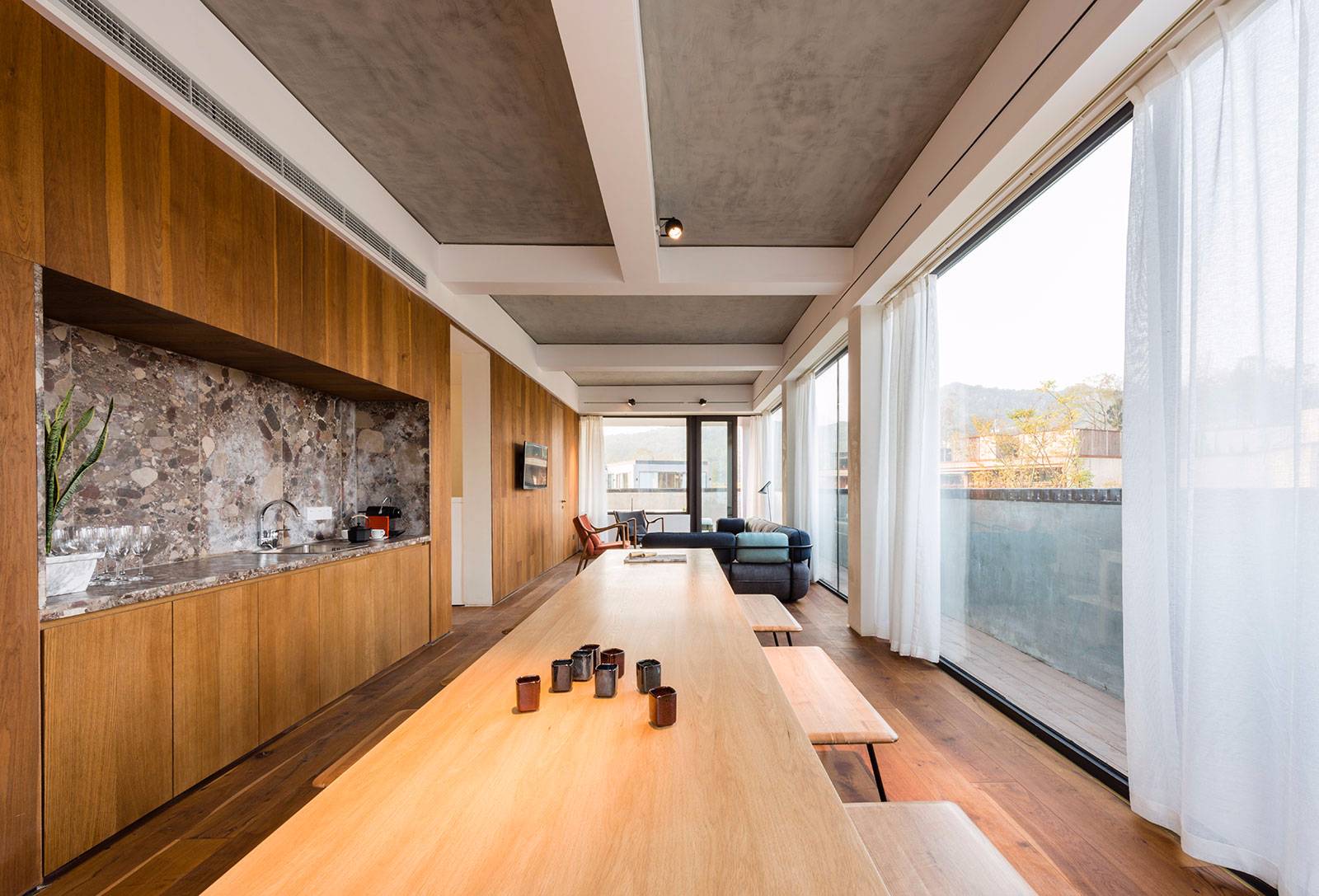 室內(nèi)是現(xiàn)代風(fēng)格,采用保持材料的自然形式來(lái)創(chuàng)造純粹的感受?;厥漳?,軟木,地毯使人感到溫暖和舒適。許多家具是由我們?cè)O(shè)計(jì)定制的。