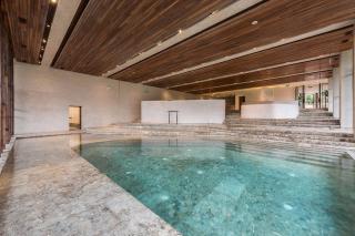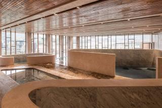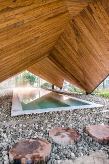 多數(shù)的池子在室外,提供了一系列的體驗(yàn)。我們?cè)噲D用不同的形式來(lái)表達(dá)不同的水的主題。有蒸汽池,冰池,浴池,草本池,鹽池,不同濃度礦物質(zhì)的池子。一些池子是靜態(tài)的,還有回旋的,冒泡的,按摩的等等。我們?cè)噲D使得這些場(chǎng)景真實(shí),純粹,這些池子在景觀中的位置都被仔細(xì)地考量以創(chuàng)造一個(gè)完全避世的空間。