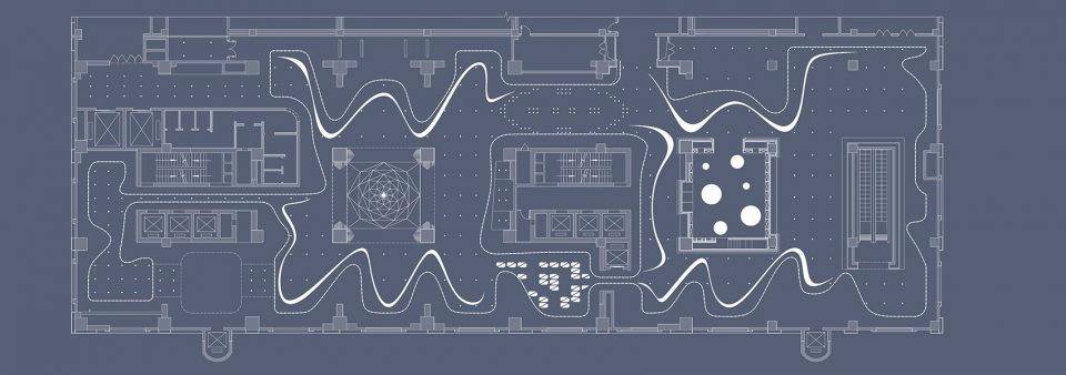 ▼在四樓日常的商業(yè)空間中打造了一個閃閃發(fā)光的入口