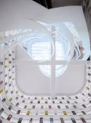 ▼無柱的白色弧線樓梯,被一條螺旋而上的白色旋轉(zhuǎn)飄板所強調(diào)