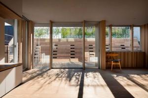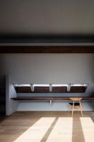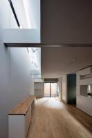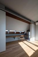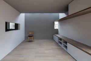 媽媽住在住宅的一樓,兒子和他的妻子兒女則住在二樓和三樓。住宅的三層被設(shè)計(jì)成了一個(gè)單獨(dú)的體量,其中包含著主臥和兒童臥室以及衛(wèi)生間等私人空間。一層也被作為一個(gè)單獨(dú)的體量進(jìn)行處理,水平方向上從三層空間偏移,以便在一層的屋頂建造一個(gè)室外露臺(tái)。在這兩側(cè)層中間的二層空間則被兩個(gè)連續(xù)的建筑表皮限定出來,它們?nèi)缤磮D一般相互契合,共同創(chuàng)造出一個(gè)與露臺(tái)融為一體的開放式起居室。