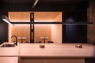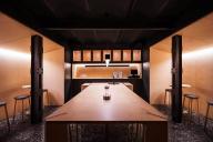 這一設計形成了兩個有趣的現(xiàn)象,一方面,廚師制作美食的長桌讓食客與廚師建立親切的互動關(guān)系。與此同時,環(huán)繞長桌而坐的食客們又形同txoko中的參與者,他們聚集,廚作,用餐和交談。長桌的設立不僅讓廚師與食客的關(guān)系更加融洽,也讓空間同時擁有了酒吧和餐廳兩種功能,功能合理,設計巧妙。
