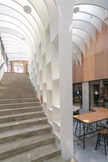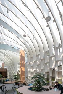 隨著時(shí)間與陽光的變化與強(qiáng)弱,讓這個(gè)空間中有如下著一場“光之雨”,如雨般灑落的光線,激發(fā)出無數(shù)的創(chuàng)意火花。提供使用者一個(gè)能隨著天窗外陰晴一起呼吸的工作環(huán)境,而光線就像是“靈感的原點(diǎn)”,提供人們源源不斷的新意!