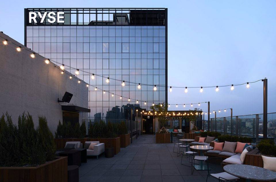 酒店建筑由Steven Song Design設(shè)計,而Michaelis Boyd則被委任擔(dān)綱酒店的室內(nèi)設(shè)計部分。設(shè)計師對酒店空間進行了大膽的設(shè)計構(gòu)思,并旨在用獨特的室內(nèi)設(shè)計理念,將藝術(shù)元素融入公共空間,娛樂休閑和酒店客房之中。RYSE為富有創(chuàng)意的當(dāng)代人群提供理想的會面場所,也為國際游人和專業(yè)人士提供了舒適的棲居空間?;趾氲墓泊髲d,精致的客房和迷人的頂樓吧臺,都讓人意猶未盡,流連忘返。