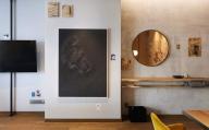 帶有原生材料紋理的材料融合,搭配奢華且精致的細節(jié)雕刻,營造出獨特的大廳環(huán)境。粉色樹脂地板呼應(yīng)了周邊社區(qū)的能量與活力,天花板上的橢圓型洞中懸掛著巨大的藝術(shù)作品。日間陽光灑入大堂,拋光的地板又化身成為倒影池。