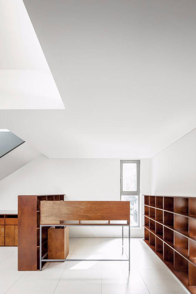 帶閣樓的五層則是一位單身男士,他需要私人空間放松身心。由于結(jié)構(gòu)限制,第五層的建筑面積相當(dāng)有限,因此我們有效地分配無(wú)用空間。最大限度地縮小了大部分僅作白天使用的客廳和臥室的空間大小,并將住戶可以放松愛好的空間作為主要處理設(shè)計(jì)。