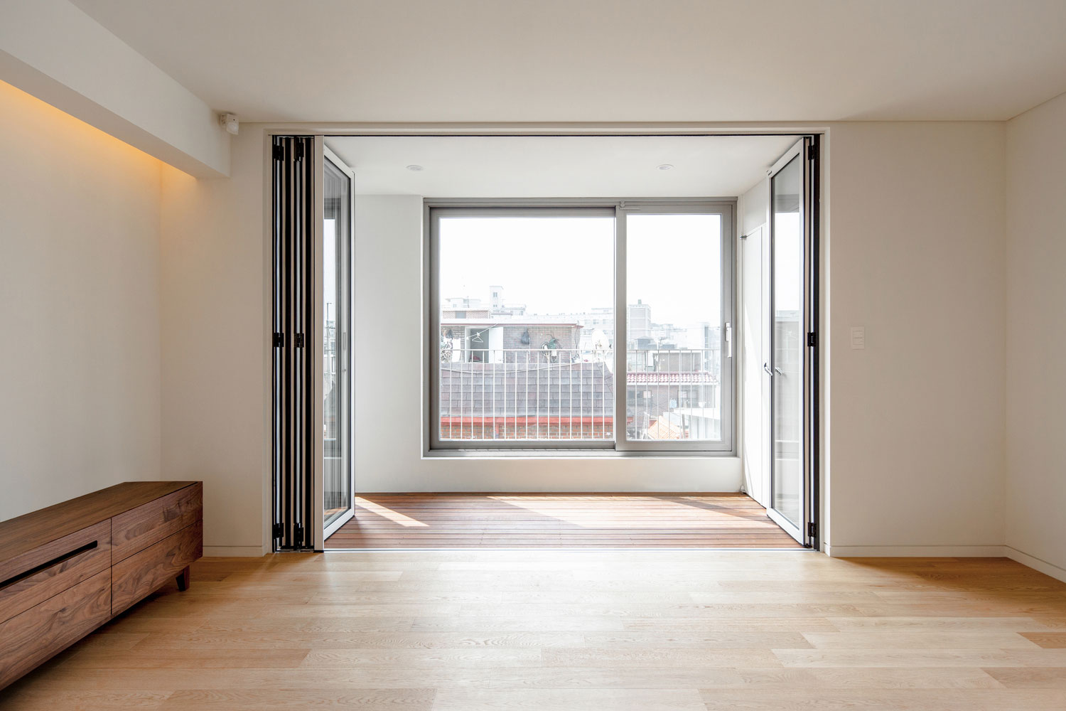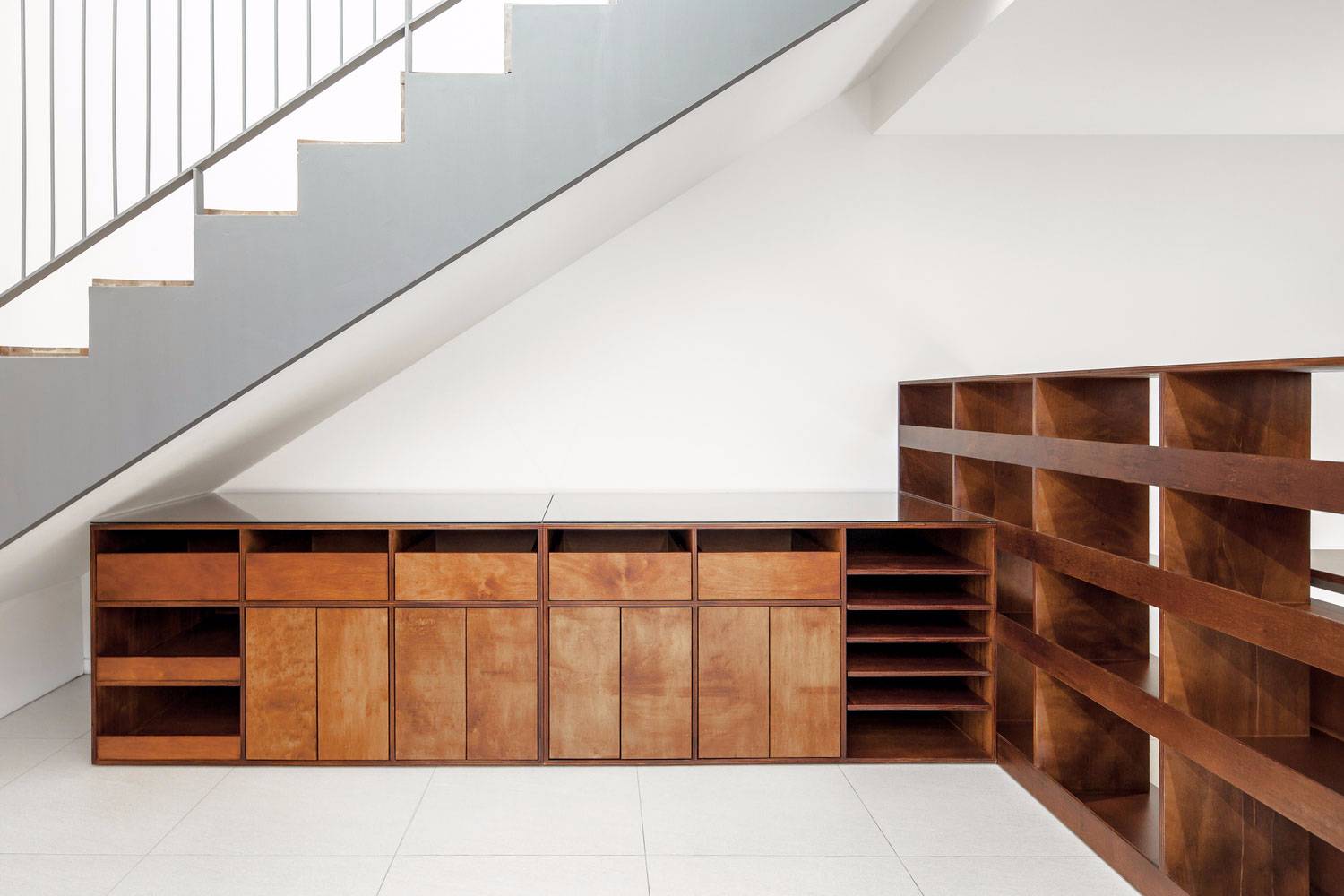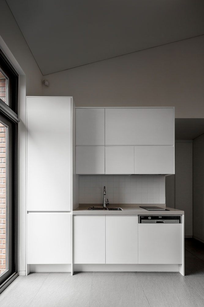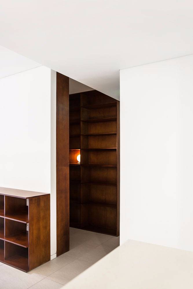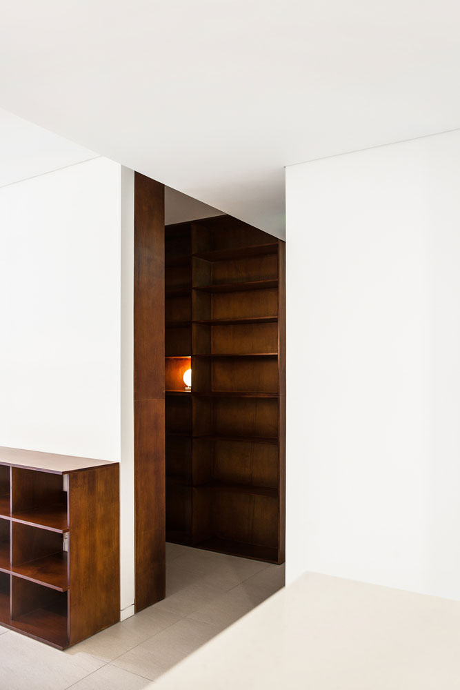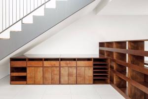 第四層的客戶的則是一位夫人。她不愿意與老房子的院子分開,所以我們把陽(yáng)臺(tái)擴(kuò)展到足夠的空間以供她可以在平時(shí)的陽(yáng)臺(tái)上養(yǎng)花。我們還最大限度地利用了存儲(chǔ)空間來(lái)增加已經(jīng)被縮小的占地面積。