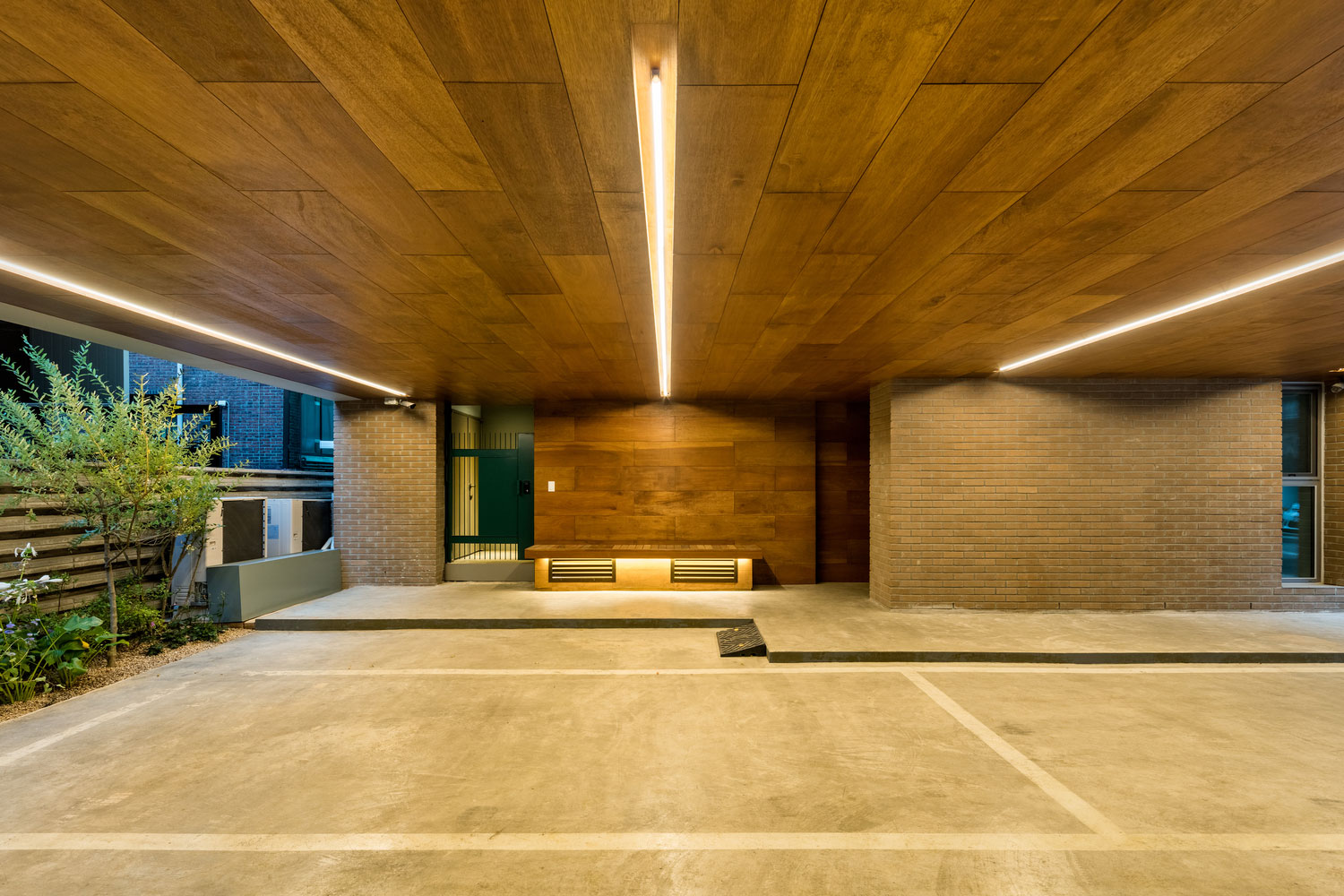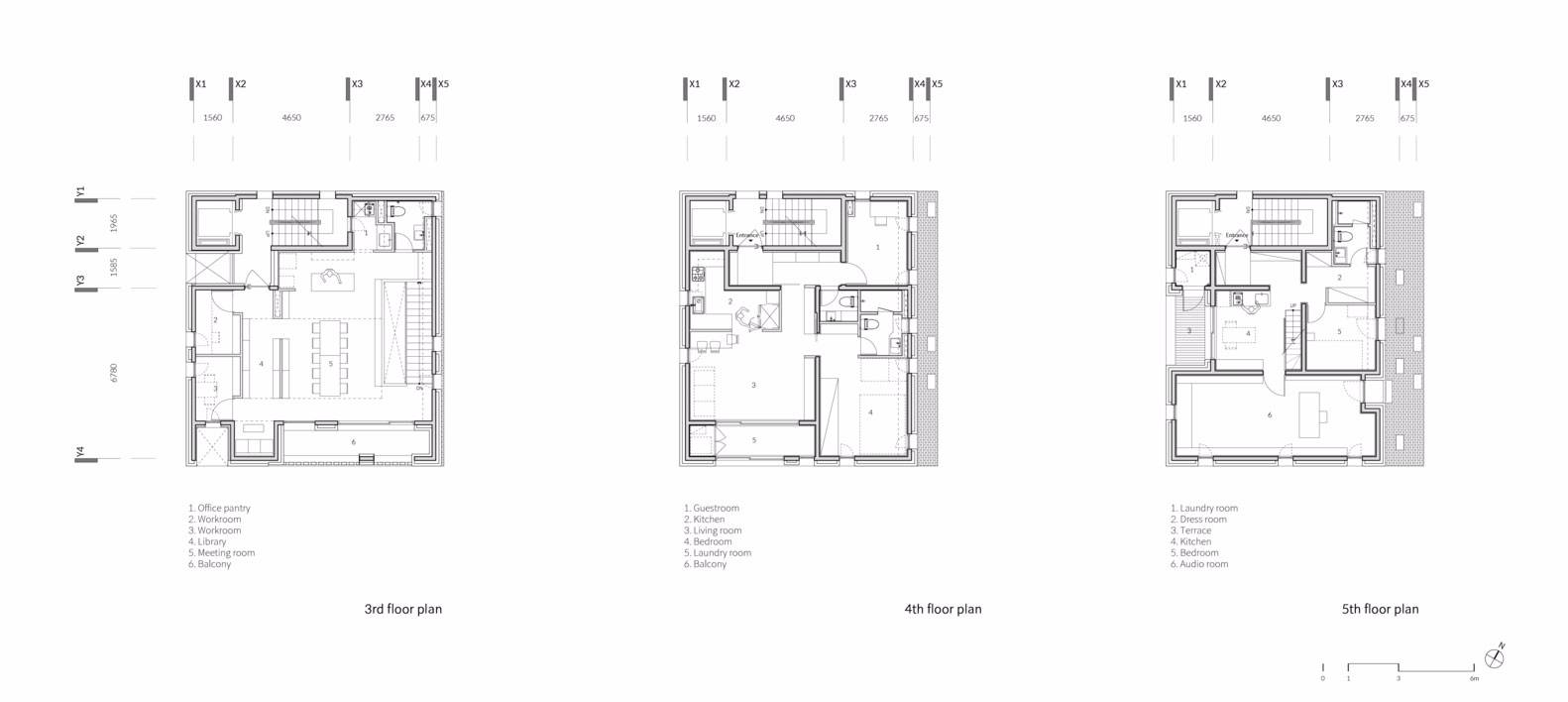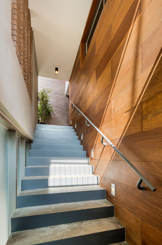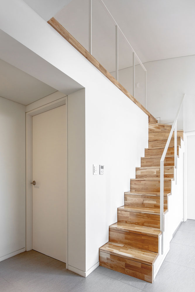 因?yàn)榇髽怯赊k公室和兩個(gè)家庭組成,所以相應(yīng)地設(shè)計(jì)流線變得更重要。電梯專供老太太使用,從而使辦公室的工作人員和居民的動(dòng)線分開。地下一層的多用途空間也有一個(gè)獨(dú)立的入口,以便使參觀公司的游覽者可以更方便的使用它。通過這種方式,辦公室,家庭和多用途空間可以確保個(gè)人的單獨(dú)入口和移動(dòng)流線。