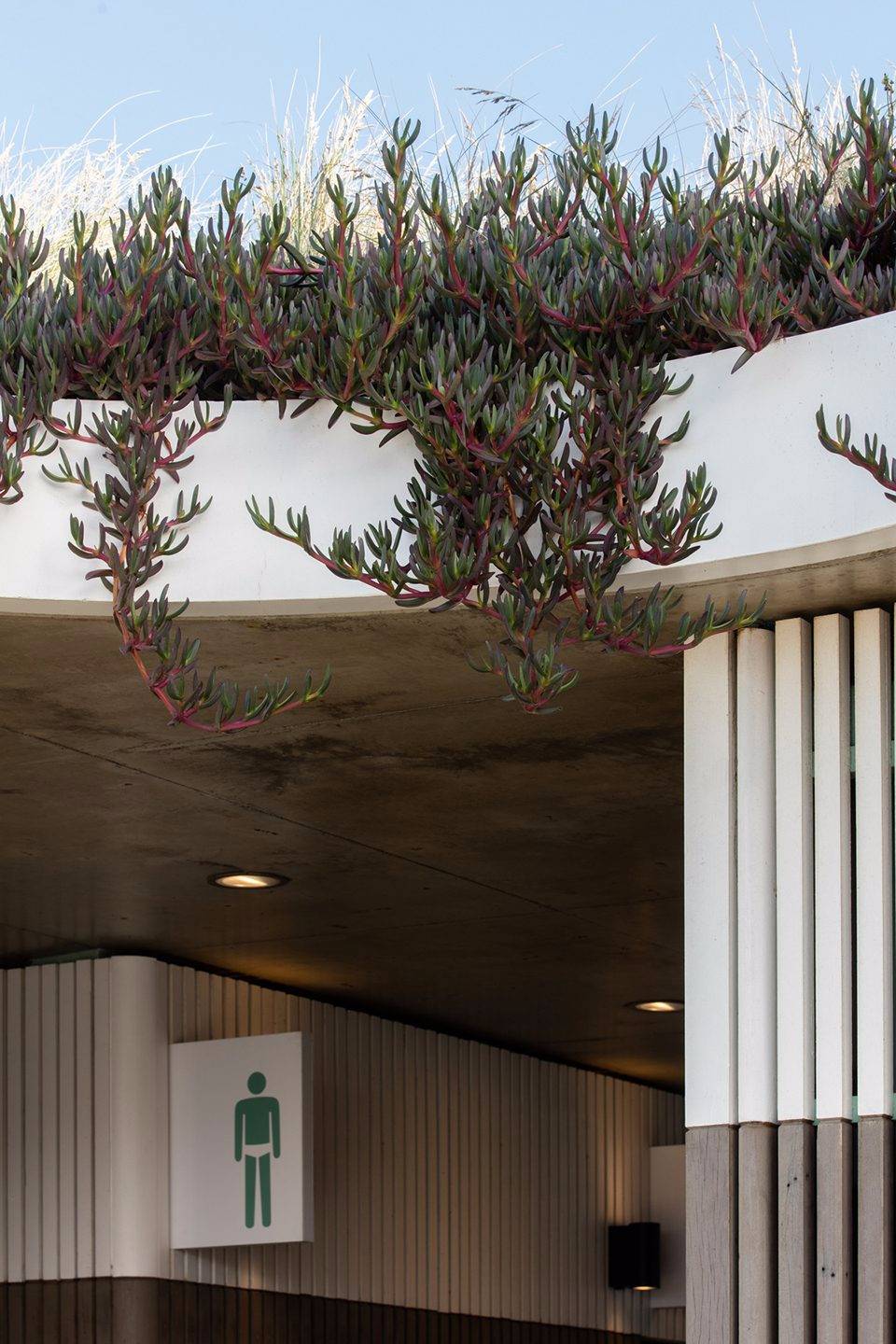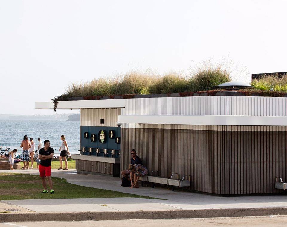 寬闊的遮陽蓬和集合式的長椅為Campbell Parade公交站提供了蔭蔽,同時激活了建筑的邊緣地帶和臨街立面?;炷敛馁|(zhì)的公共洗手臺和室外淋浴區(qū)使建筑延伸至公共領(lǐng)域,使海岸生活變得更加豐富便利。