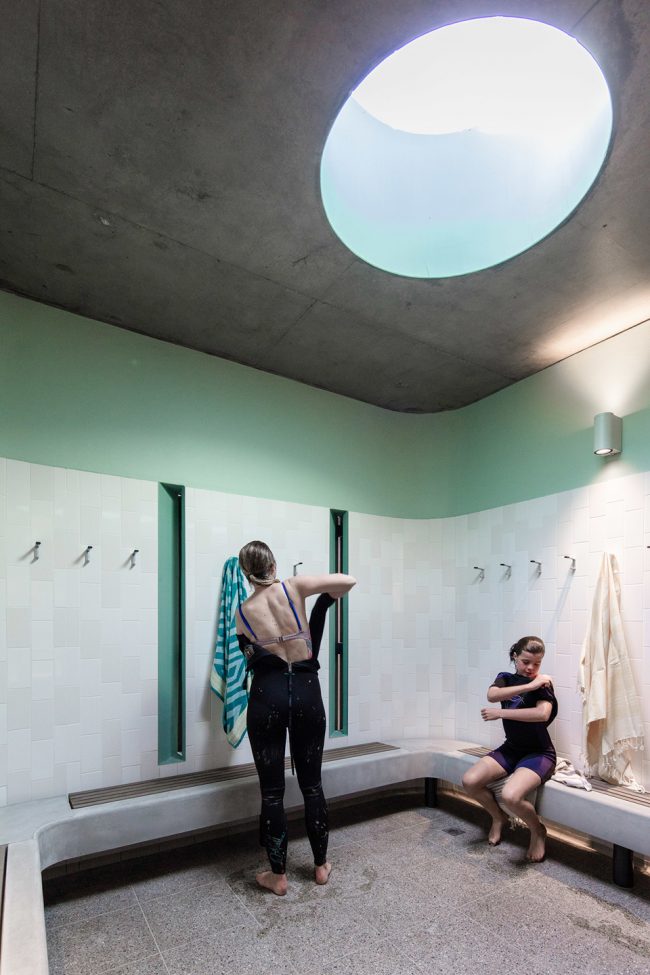 公共性最強的建筑,修建在公共性最強的場所——North Bondi設(shè)施與最具代表性的澳大利亞海岸生活形成了和諧的共鳴。這是一處為夏天的擁擠人群而設(shè)計的場所,使人們無需再為身上殘留的泥沙、鹽粒和小傷口而困擾。