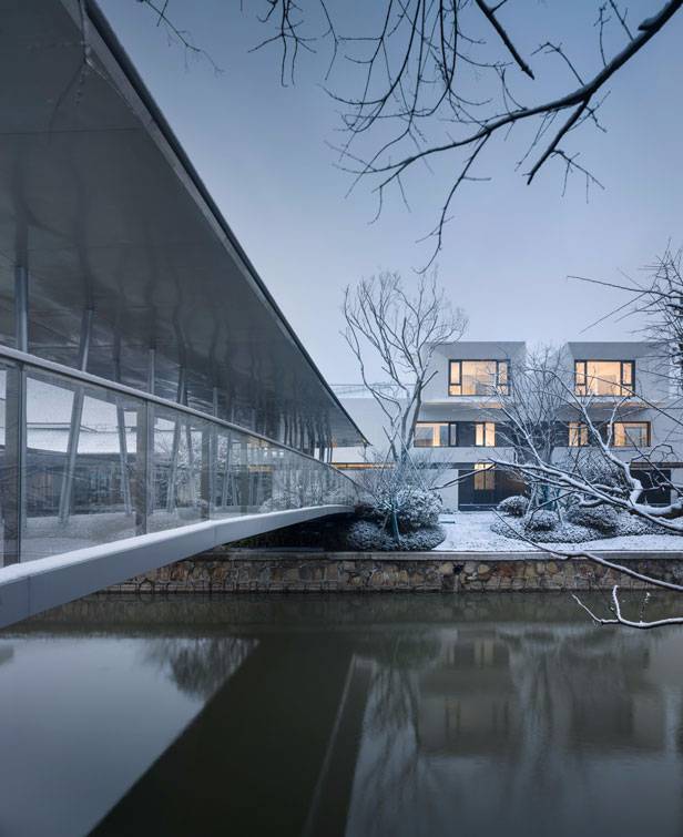 在蘇州“大家”的建筑圖卷中,處處可看到西方的極簡技法,那些線條語言、色彩色調(diào)與石材立面,與東方的傳統(tǒng)建筑形制相融合,形成了蘇州“大家”的現(xiàn)代新中式建筑風(fēng)格。