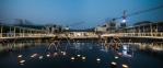 穿過出檐平低的建筑空間,只見飛橋涉水而過,河道水勢緩緩,遠(yuǎn)觀雙曲屋面橫亙水岸,水岸宅院鄰水而居,此為隔岸觀色之境。