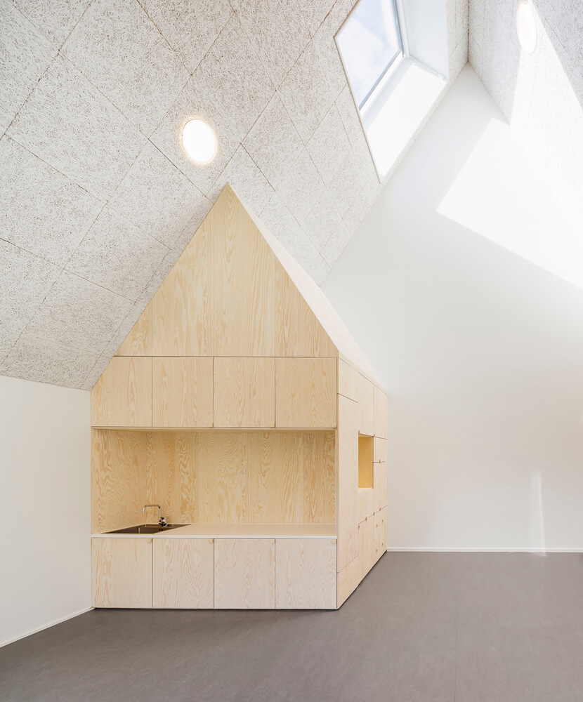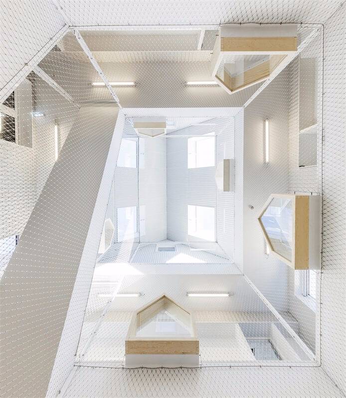 “我們努力簡化房屋建構(gòu)方式,讓它們看起來像是一個可以模仿的漫畫讓孩子們可以去臨摹。例如,屋頂線通過隱藏的下水管和精準(zhǔn)的材料銜接保持整潔,窗戶也經(jīng)過精心設(shè)計(jì)是她們看起來好像沒有框架—因?yàn)樾『⒆涌赡軙嬎鼈?,”Dan Stubbergaard說。