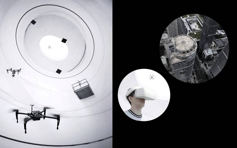 試飛過程中無人機可從艙體頂端飛出,遙控者借由智能飛行眼鏡可俯瞰無人機拍攝的景觀,予以試飛更寬廣生動的視覺體驗。