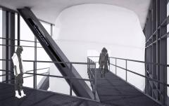 漢諾森以Zero-G(零重力)概念為基本風格,通過對大堂、展廳及試飛區(qū)等內(nèi)部空間的設計呈現(xiàn)輕質(zhì)、漂浮的印象,試圖將信息科技與藝術(shù)裝置融入該項目。