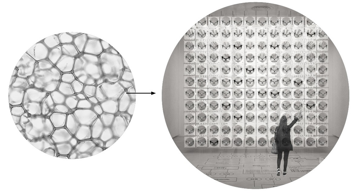 大堂象征著通往另一個空間的入口,隨著智能時代的來臨,關(guān)于人與物的記錄,都通過數(shù)字媒介儲存起來。信息系統(tǒng)能協(xié)助人們建立邏輯思維,思維的不斷進步引導人類智慧的發(fā)展。