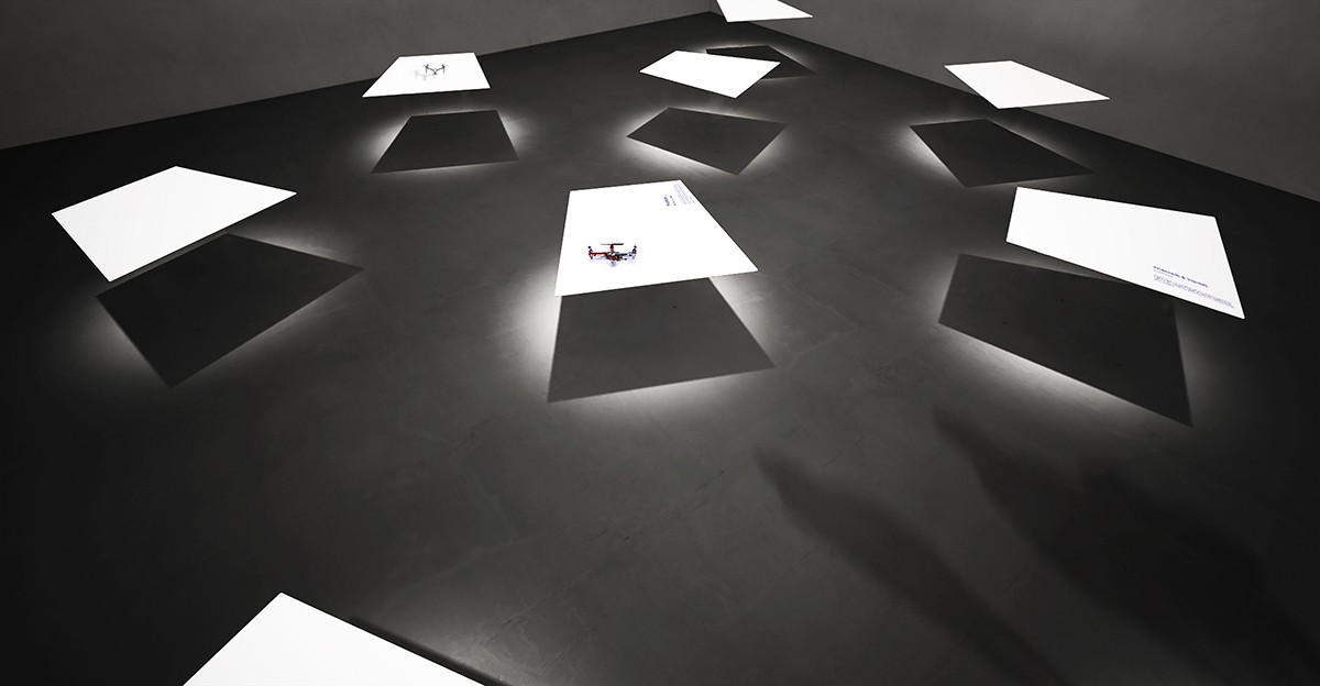 由無人機采集的數(shù)據(jù)信息通過圖像化推演,呈現(xiàn)于排列整齊的LED屏幕上。