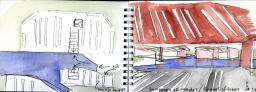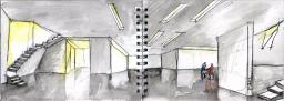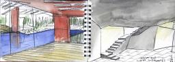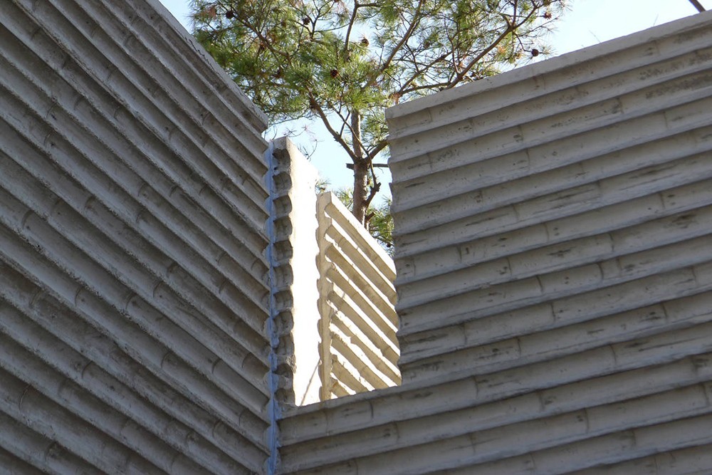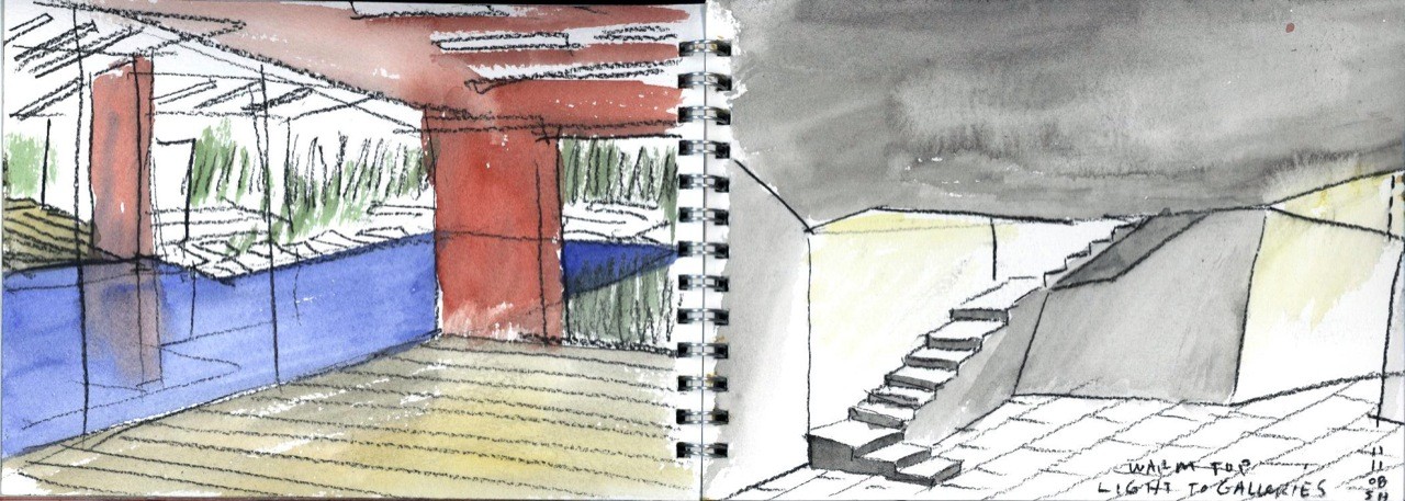 私人畫(huà)廊和房屋坐落于韓國(guó)首爾某區(qū)的山坡上。該設(shè)計(jì)被稱(chēng)為與“音樂(lè)建筑學(xué)”研究工作室平行的實(shí)驗(yàn)項(xiàng)目。建筑的基本幾何形狀靈感來(lái)自作曲家Istvan Anhalt,“模塊交響樂(lè)團(tuán)”于1967年的素描作品,刊登在John Cage的一本名為“記譜法”的書(shū)里。