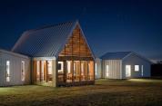 德克薩斯店建筑事務(wù)所Miró Rivera Architects設(shè)計建造了一座屋頂鋸齒狀、半面格柵的小住宅,作為該片農(nóng)村區(qū)域內(nèi)可持續(xù)社區(qū)的原型建筑。該事務(wù)所設(shè)計的這座丘陵住宅與其四周的現(xiàn)存環(huán)境非常契合,不依賴于市政供水系統(tǒng),并且通過地?zé)嵯到y(tǒng)自給自足室內(nèi)的加熱及制冷需求。