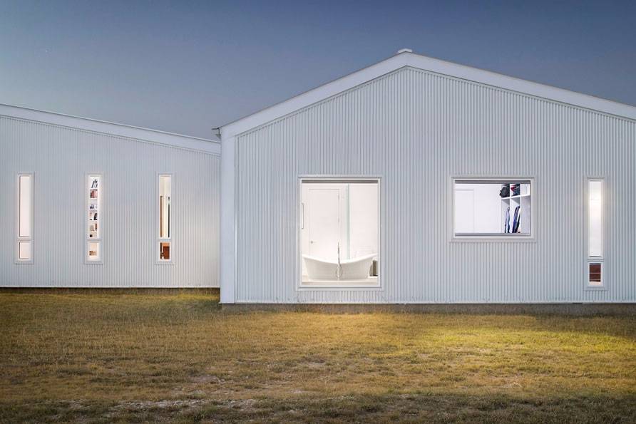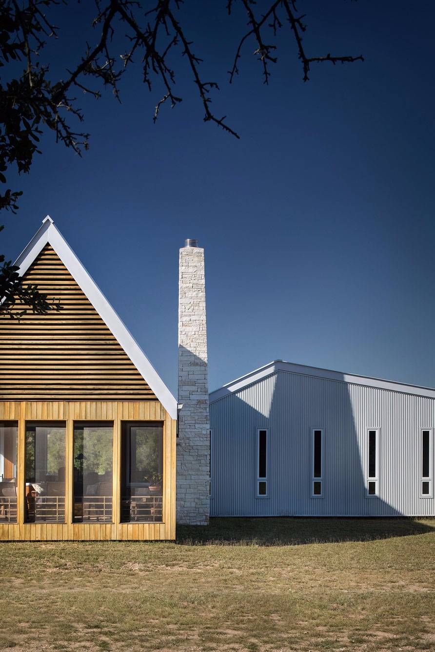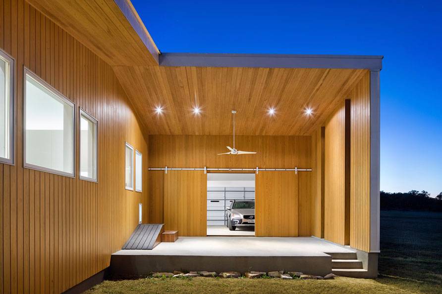 建筑的外立面由結(jié)構(gòu)鋁板制成,用材料肋隱藏固定系統(tǒng),鋁板的選擇是因?yàn)槠涓哂心途眯?,不需要任何特殊的整理或處理,并且可以很容易地進(jìn)行清洗。屋頂也是金屬制成,由雙鎖直立縫的布局構(gòu)成,以抵御德克薩斯中部猛烈的風(fēng)暴侵襲。住宅上下起伏的輪廓暗喻了丘陵地貌鄉(xiāng)村的特征。