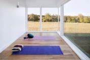 瑜伽和冥想用的房間設(shè)計有大面積的角窗以展示自然景觀。除了獨(dú)特的坡頂體量之外,該住宅在工業(yè)感和實(shí)用性兩個方面的特色也十分突出。室內(nèi)、墻壁、天花板和窗罩都以白色為主,賦予現(xiàn)代感的審美。
