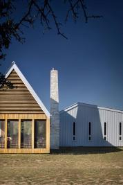 整個設(shè)計類似于小教堂,并參考了房主的宗教信仰?!八闹魅擞H切地稱它為圣所,房主是一對性格活躍的授命牧師,由于預(yù)算經(jīng)費(fèi)十分有限,這座風(fēng)格現(xiàn)代與當(dāng)?shù)剞r(nóng)場住宅特色相結(jié)合的住宅可以讓人們聚集在一起,在一片有責(zé)任感、可持續(xù)的環(huán)境中凈化心靈,”事務(wù)所補(bǔ)充道。