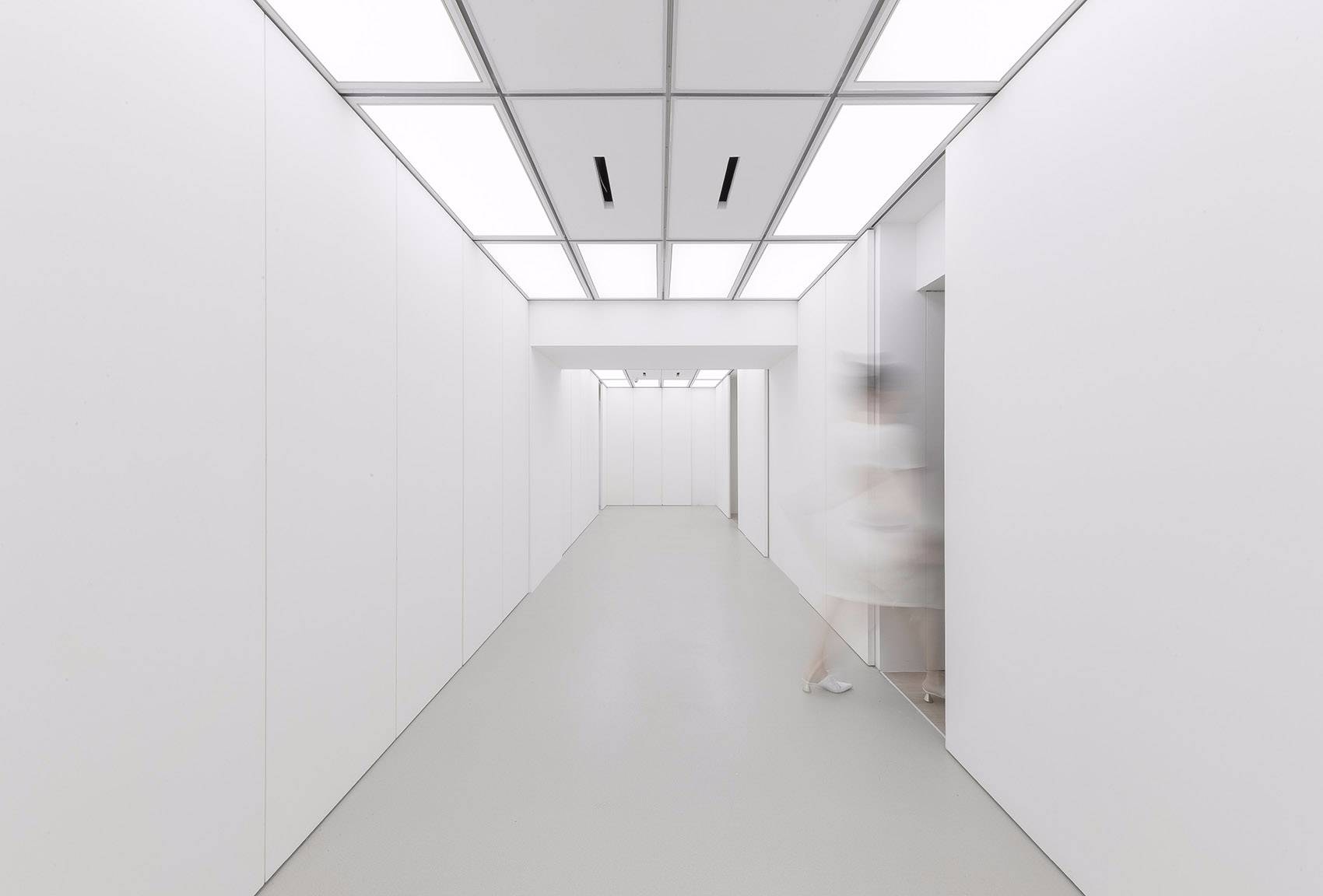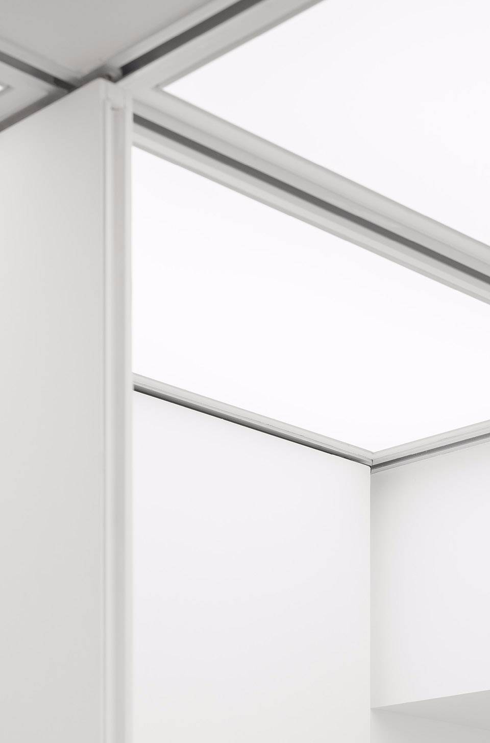 ▼通透干凈的內部空間,軌道吊頂和天光相結合