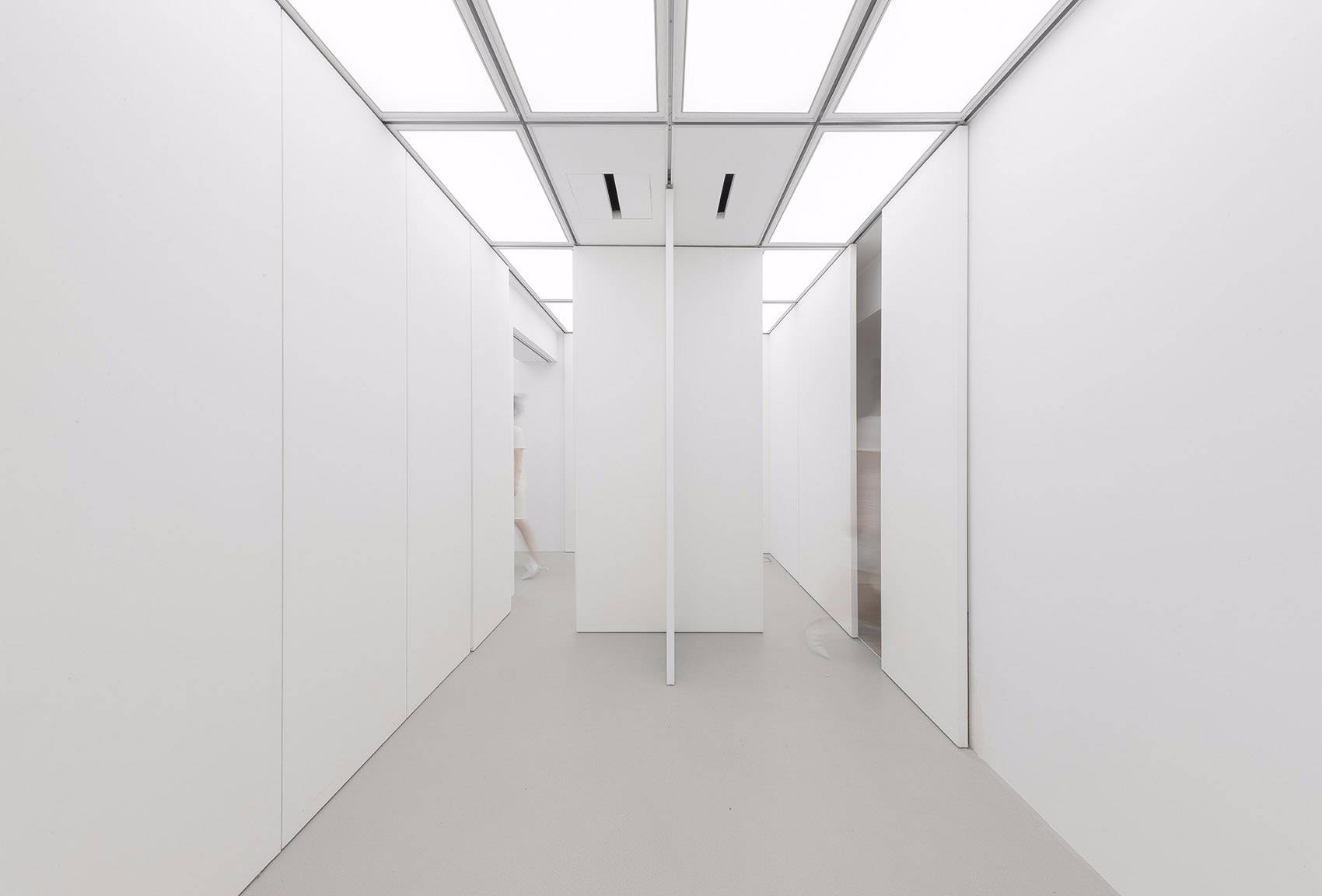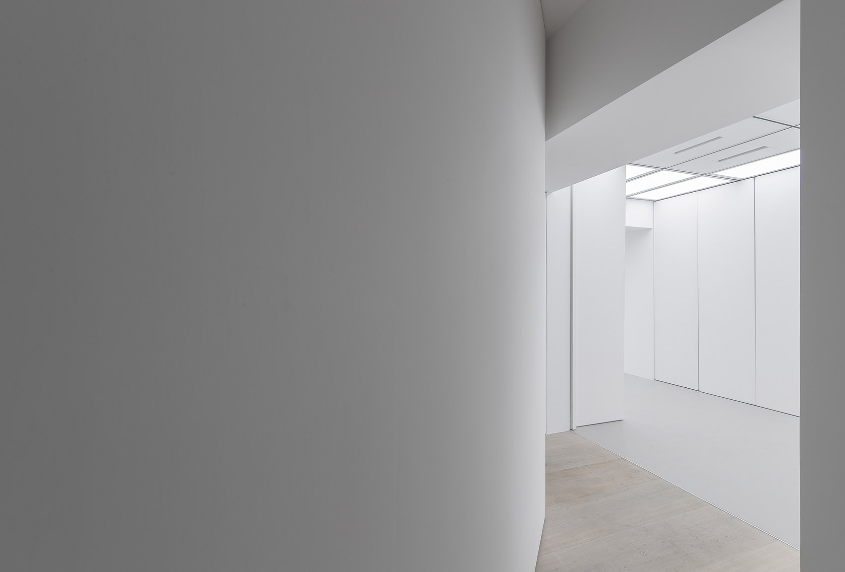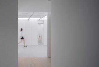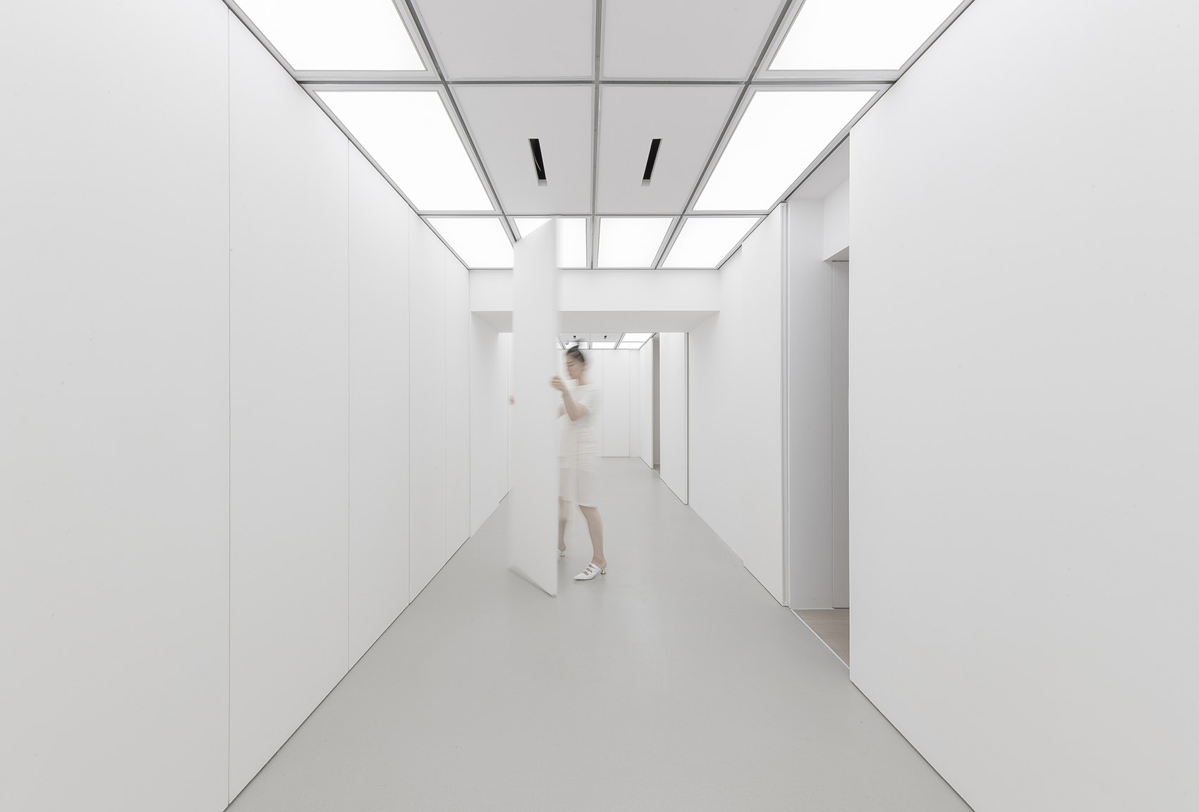 確保工作室的設計不能過于搶眼跟夸張而搶奪畫作及展覽物件本身的個性,同時又需要保證畫廊的格調跟質感,是萬社首要考慮的因素。因此萬社對這個多功能藝術空間進行了以變換空間為主的設計,使其可以從恬靜高級的畫廊輕松切換到趣味性互動空間及行為藝術的表演場所。整體空間使用自然白色的調性還原畫廊本身干凈的屬性,沿窗區(qū)域的地板使用了調整過的淡黃灰色系的木地板,營造溫暖及安靜的氛圍。