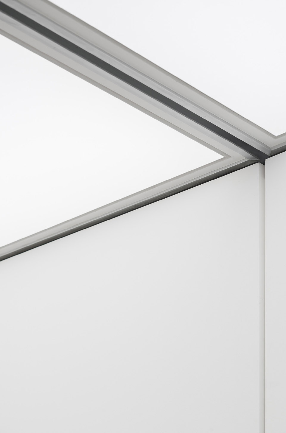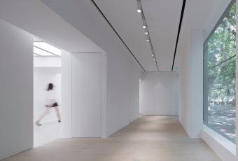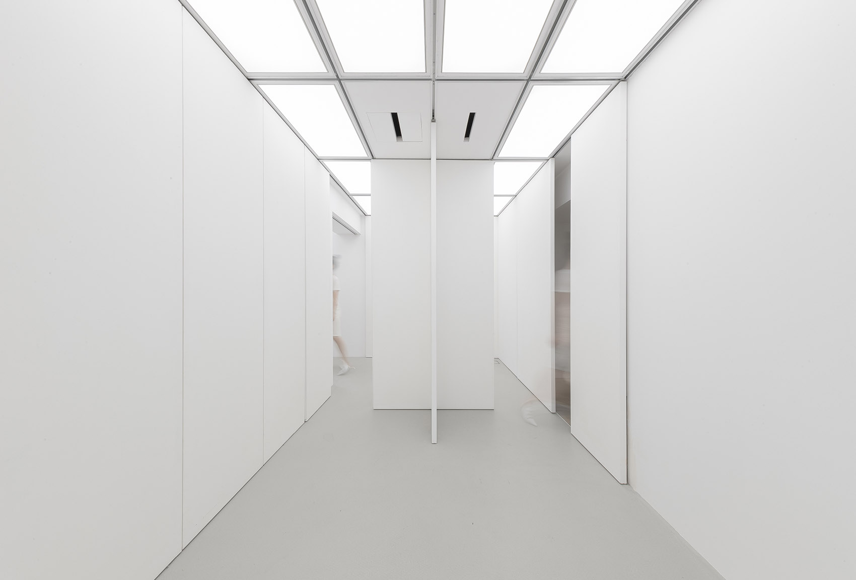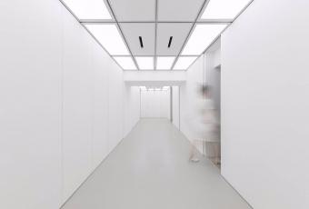 確保工作室的設計不能過于搶眼跟夸張而搶奪畫作及展覽物件本身的個性,同時又需要保證畫廊的格調跟質感,是萬社首要考慮的因素。因此萬社對這個多功能藝術空間進行了以變換空間為主的設計,使其可以從恬靜高級的畫廊輕松切換到趣味性互動空間及行為藝術的表演場所。整體空間使用自然白色的調性還原畫廊本身干凈的屬性,沿窗區(qū)域的地板使用了調整過的淡黃灰色系的木地板,營造溫暖及安靜的氛圍。