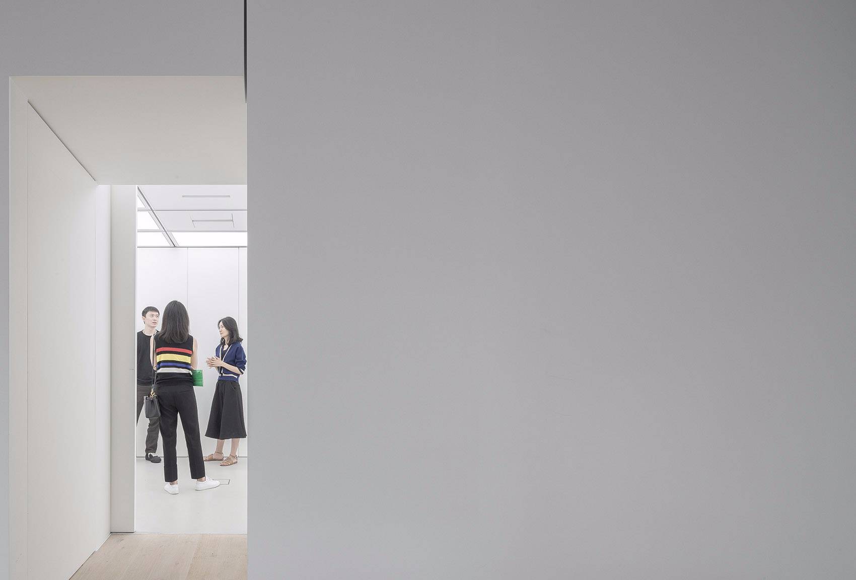 ▼穿過隔墻,畫廊不同空間之間形成視覺聯(lián)系