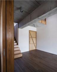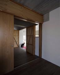 這次設(shè)計(jì)追求實(shí)用性——適用,與房子所處的農(nóng)耕環(huán)境融為一體。建筑外墻延伸至地面,形成一個(gè)外部有遮蔽的庭院和一個(gè)花園,因此,基地被L形的房屋分隔開。L形房屋內(nèi)部能看到周圍的農(nóng)田的景色。墻壁延伸形成的隱蔽空間可以用來(lái)種植,或者存放堆疊的木材和工具。