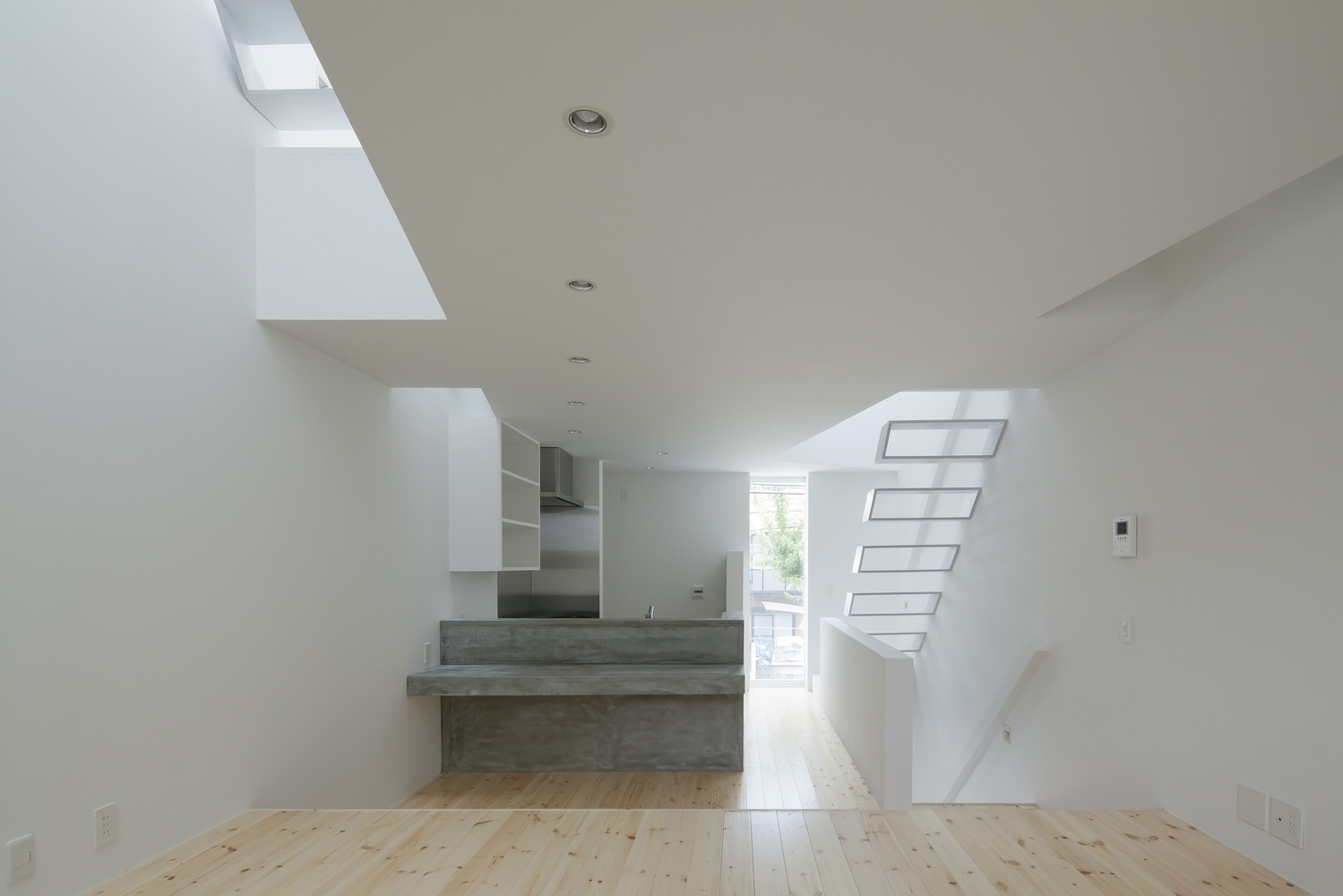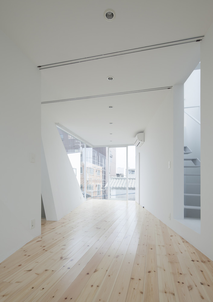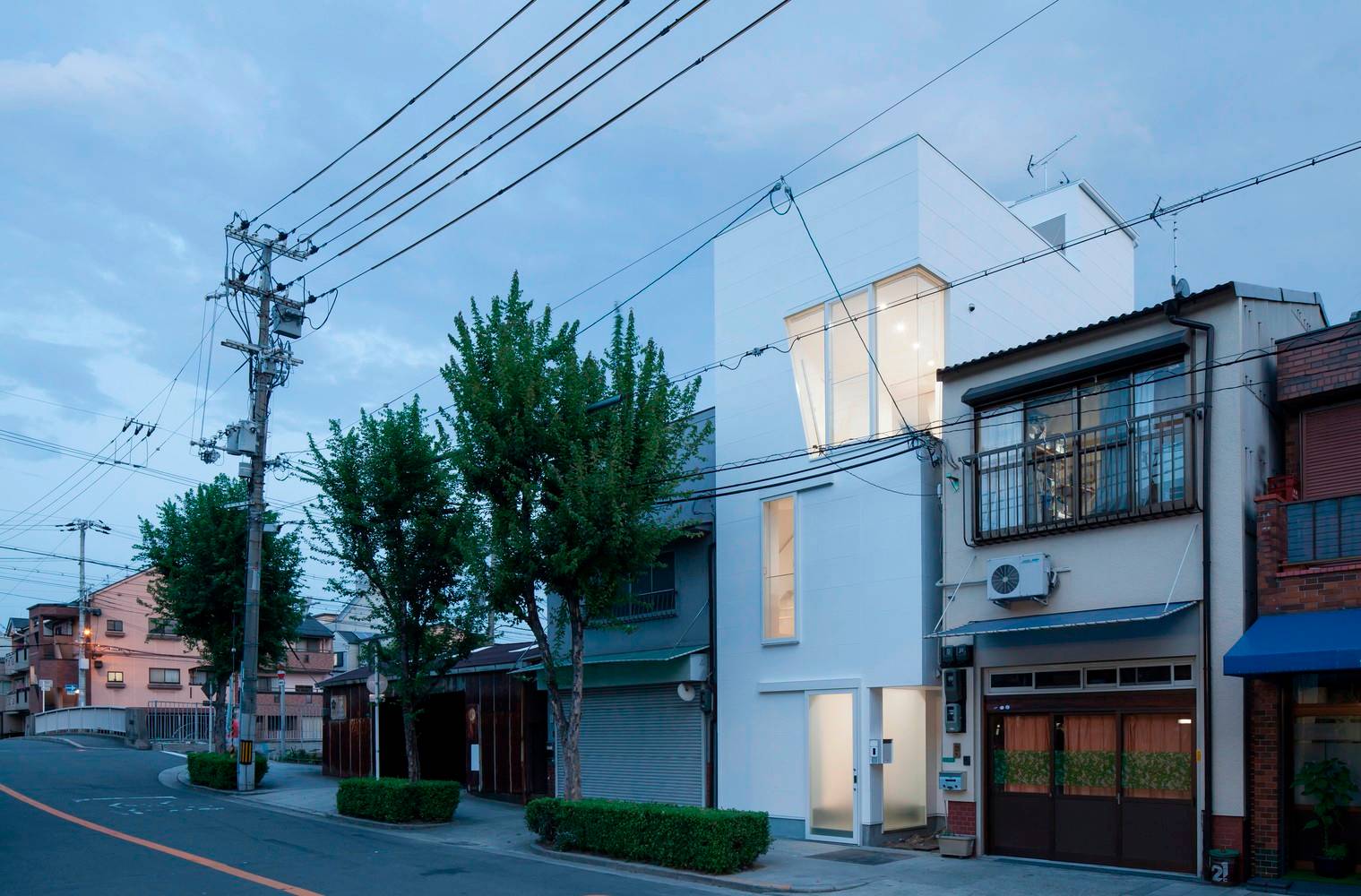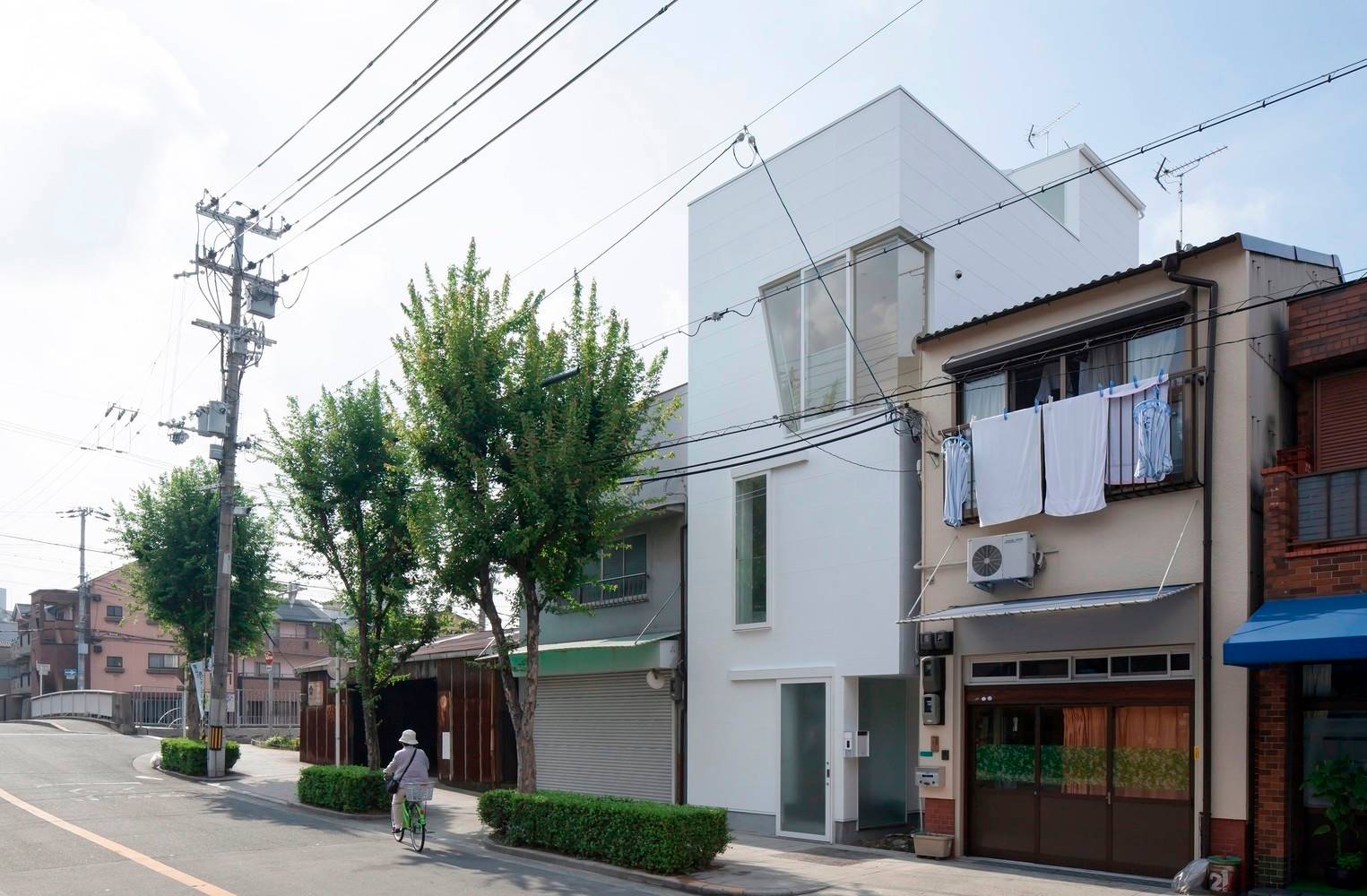 這房子是為有兩個孩子的家庭設計的。這所房子位于市區(qū)及一小塊在日本大阪只有43.21平方米的地方。地段周圍是混合使用的區(qū)域,小房子、小工廠和小辦公樓共存沒有任何的和諧。客戶的舊的居所也在這個地段,是一個木制的兩層樓的房子。相鄰部位接近,沒有自然光進入老房子。因此,客戶要求的家庭房(生活區(qū),用餐區(qū)和廚房)盡可能無柱,或使用道路承重墻,讓自然光進入屋內,尤其是進入家庭房內。