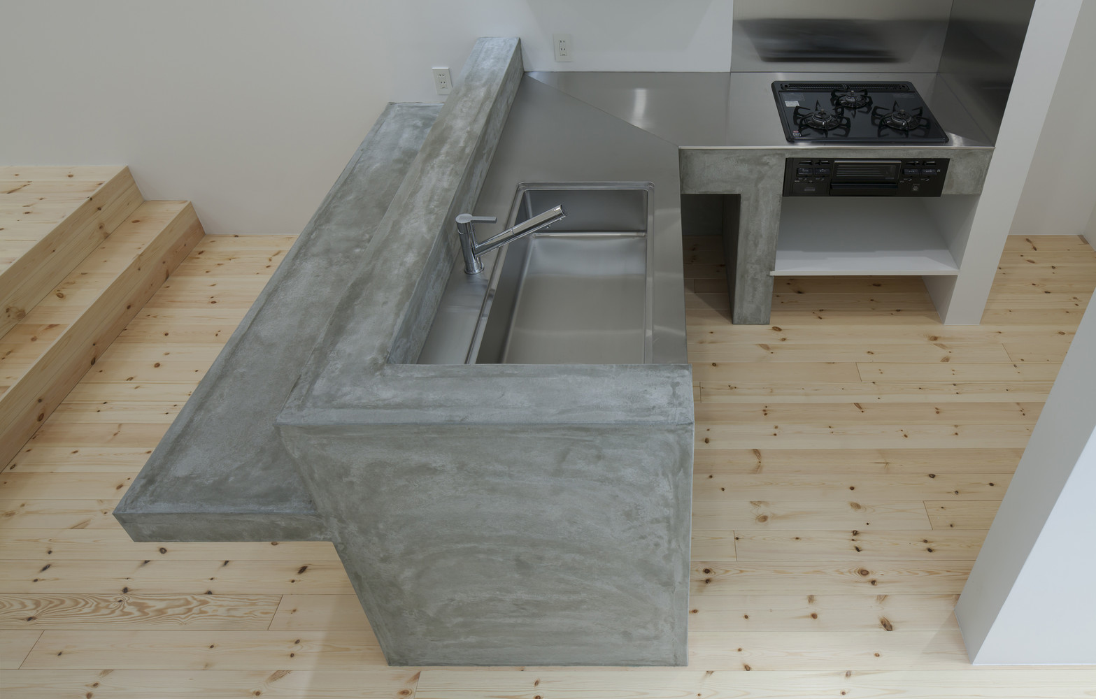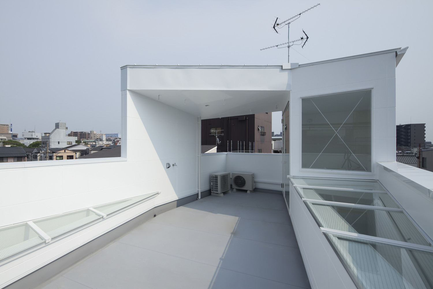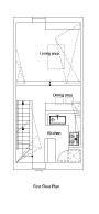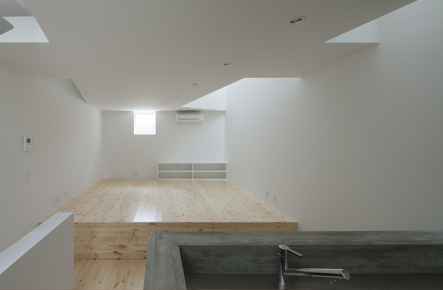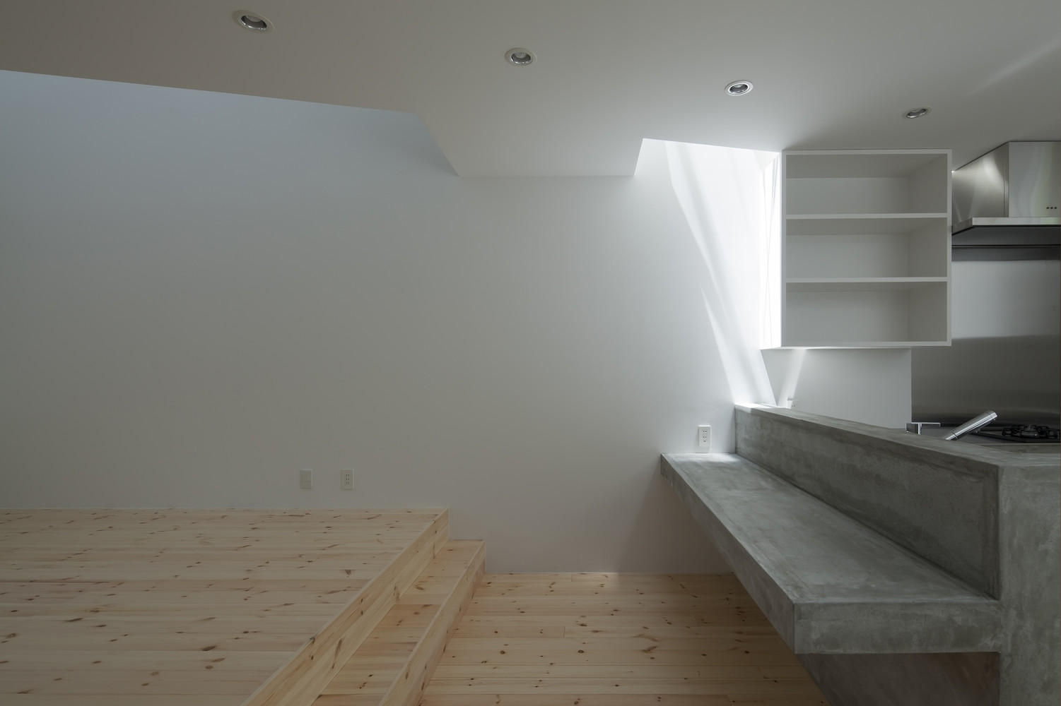 這房子是為有兩個孩子的家庭設計的。這所房子位于市區(qū)及一小塊在日本大阪只有43.21平方米的地方。地段周圍是混合使用的區(qū)域,小房子、小工廠和小辦公樓共存沒有任何的和諧。客戶的舊的居所也在這個地段,是一個木制的兩層樓的房子。相鄰部位接近,沒有自然光進入老房子。因此,客戶要求的家庭房(生活區(qū),用餐區(qū)和廚房)盡可能無柱,或使用道路承重墻,讓自然光進入屋內,尤其是進入家庭房內。