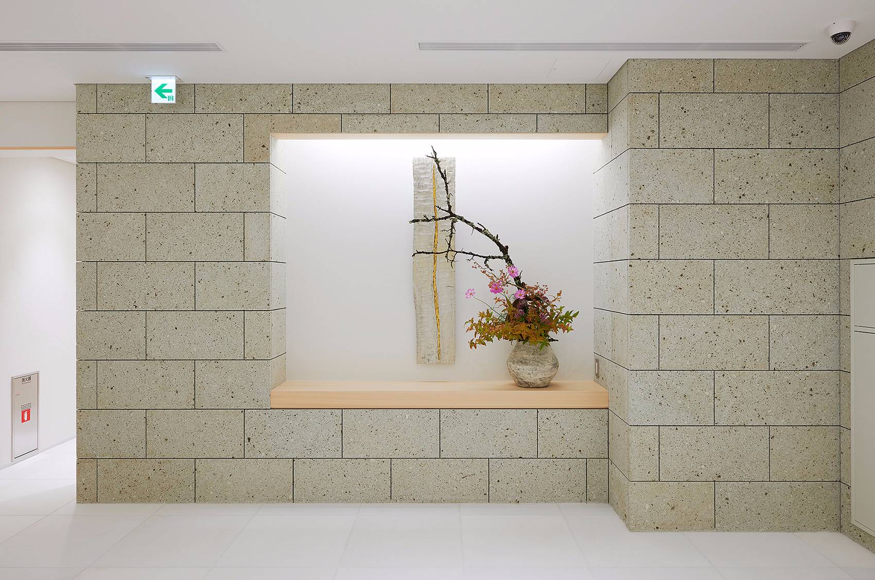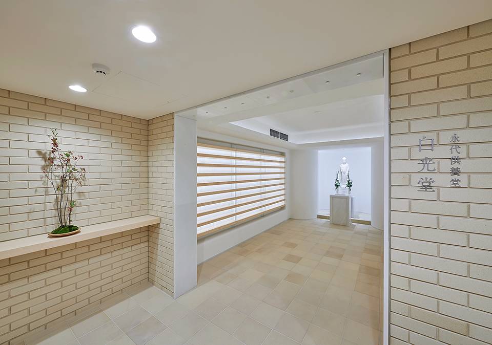 B1層是一個如洞穴般的空間,有著低矮的天花板。墻壁上使用了在多治見燒制的瓷磚,并飾以灰泥接縫。骨灰盒的存放空間使用了檜木和玻璃,通過對光線的吸收和反射產(chǎn)生間接性的照明。