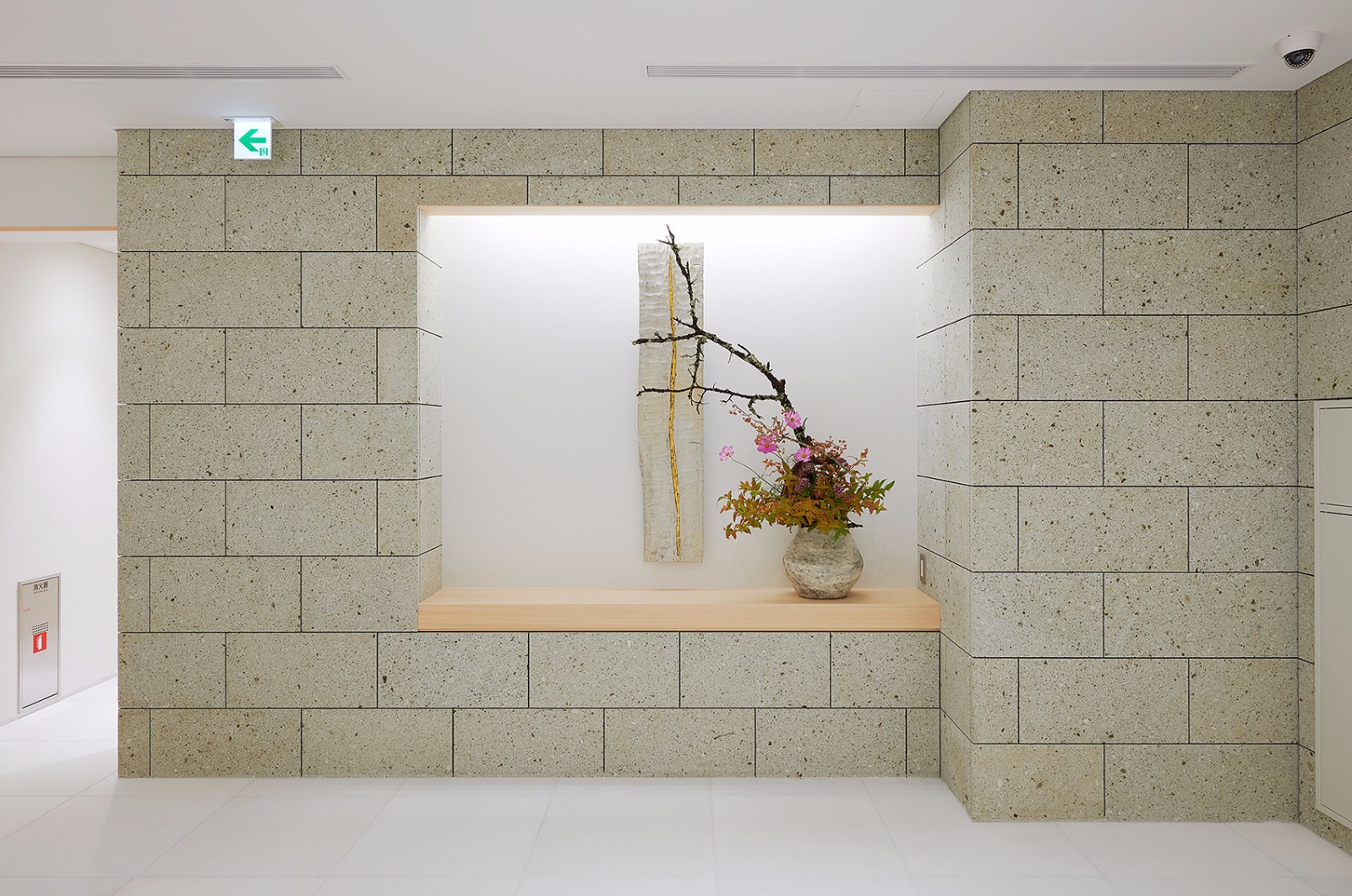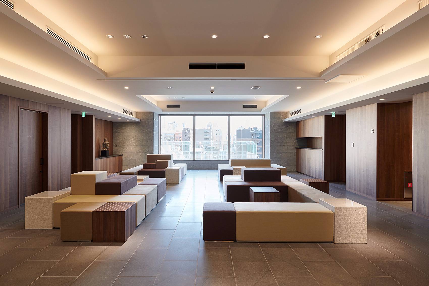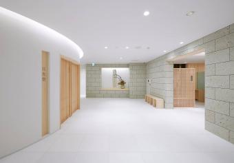 這座殯儀館建筑位于東京藏前,包括主廳和用于停放靈柩和骨灰盒的空間,本案為之設(shè)計了7個樓層中的B1、3、5、6層。設(shè)計師將傳統(tǒng)的材料和技術(shù)應(yīng)用到簡潔的空間當(dāng)中,期望表達(dá)一種原始而純粹的感覺。