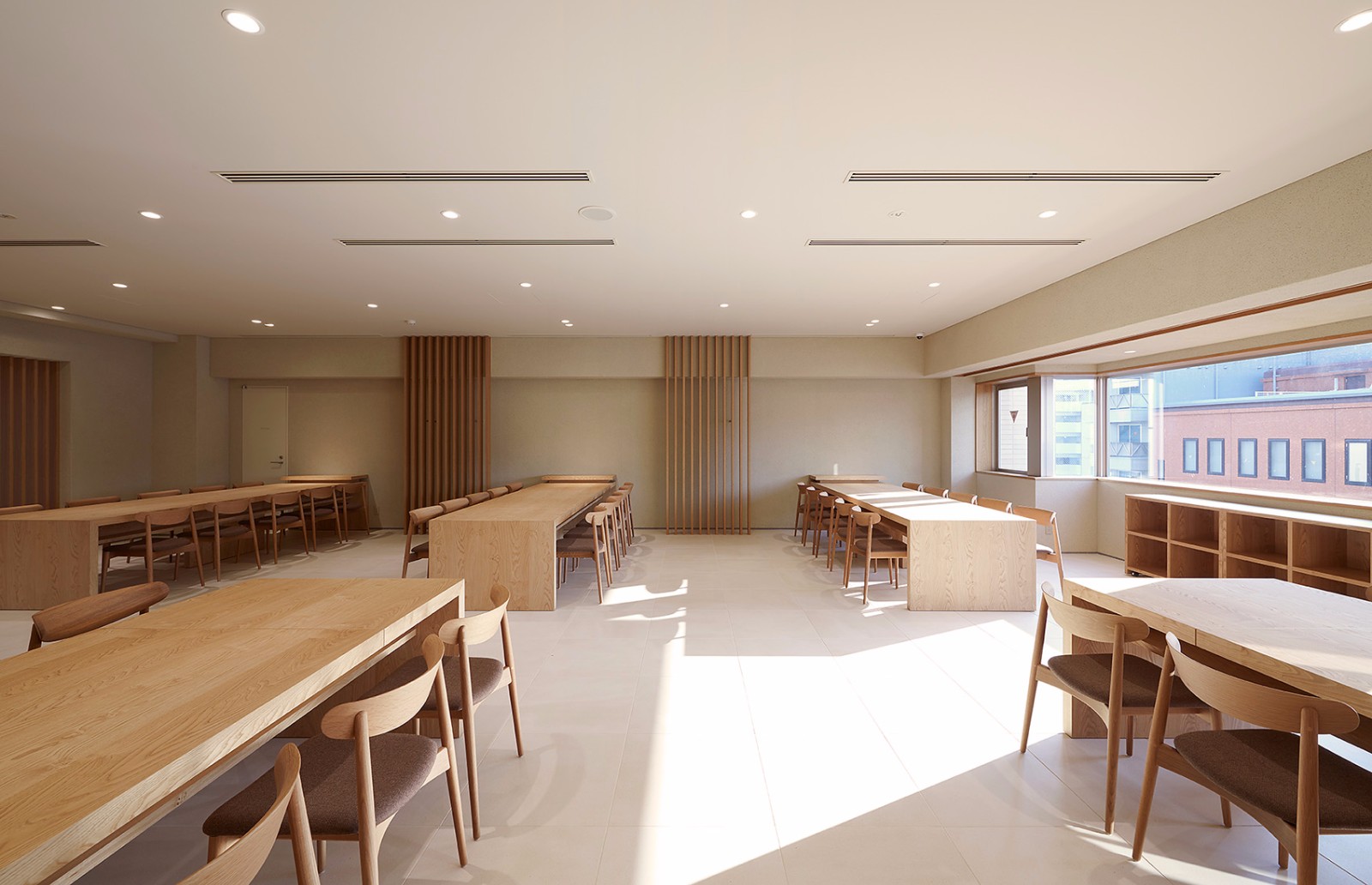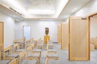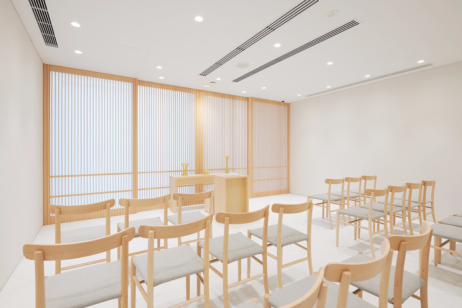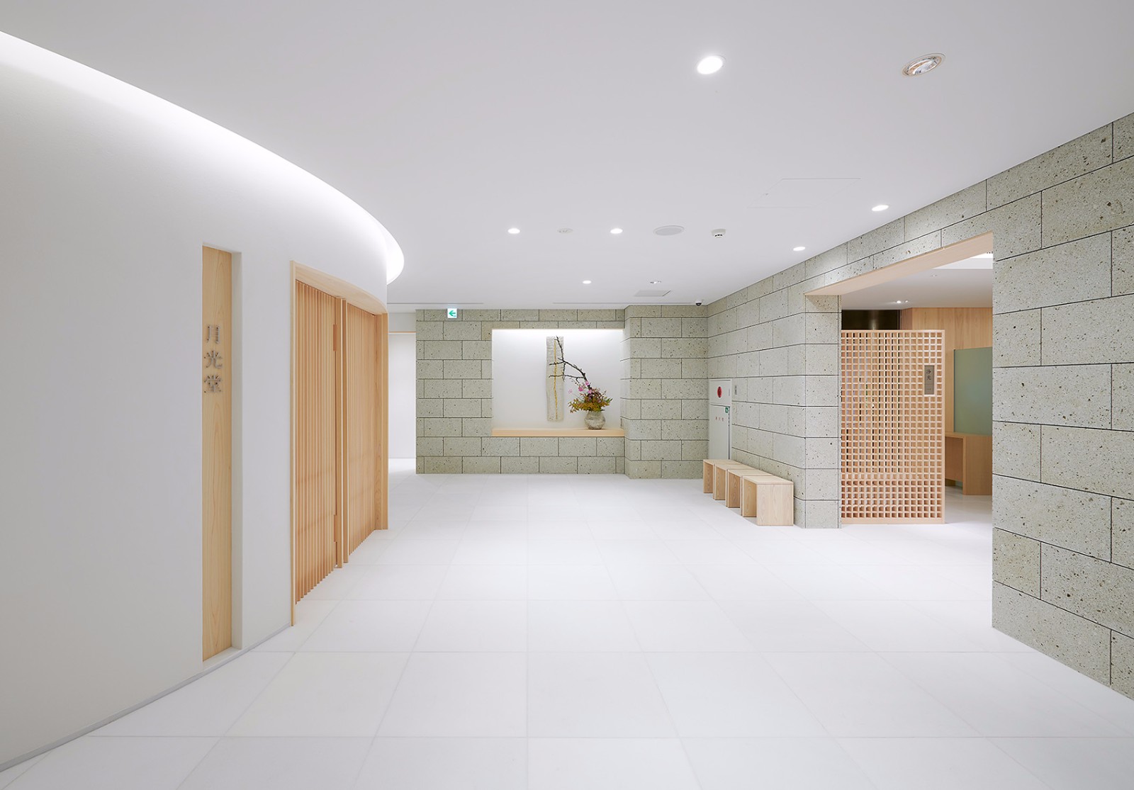 設(shè)計簡練、質(zhì)感細(xì)膩的室內(nèi)陳設(shè)帶來親切溫暖的感覺。在東京,類似這樣的殯儀館建筑正在逐漸增多。它們不再是普通的殯儀用地,而是各自擁有不同的氛圍和特點。