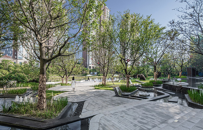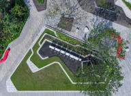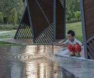 在這里,我們跳脫出純粹的場(chǎng)地推演設(shè)計(jì)方式,以“形而上”的視角重新審視這一場(chǎng)所。于是乎面朝大海,春暖花開,原有的池塘變成了大海,兩米的高差為海浪和礁石提供了演繹的溫床,行走的風(fēng)景將會(huì)串接起一幅幅落舟、踏浪、過礁、穿巖、觀日的意境。這一“意境”既是對(duì)場(chǎng)地條件的統(tǒng)領(lǐng),又是對(duì)廣東這一百年海濱省市大地理環(huán)境的致敬,整個(gè)的場(chǎng)地游走是一次在靜止之形與流動(dòng)之勢(shì)中的行吟。