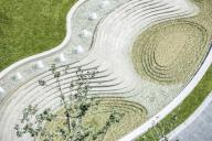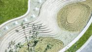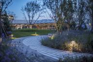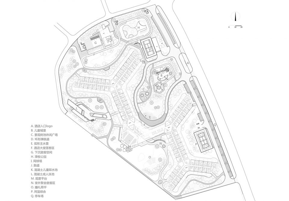傳統(tǒng)的酒店前庭多采用禮儀感十足的軸線景觀,或選擇充滿靜謐度假氛圍的植物景觀。而安瀾酒店作為整個阿那亞大景區(qū)大社區(qū)的組成部分,坐落在阿那亞整個大度假社區(qū)之中,因此并不能將其視作一個孤立的酒店。將兒童場地前置于酒店前庭的設計,彌補了整個景區(qū)兒童場地的不足,并為酒店提供了打造特色的切入點,使得酒店前庭在兼具欣賞功能的同時,更增添可互動參與的景觀趣味,是一個動靜皆宜的景觀設計創(chuàng)新。
