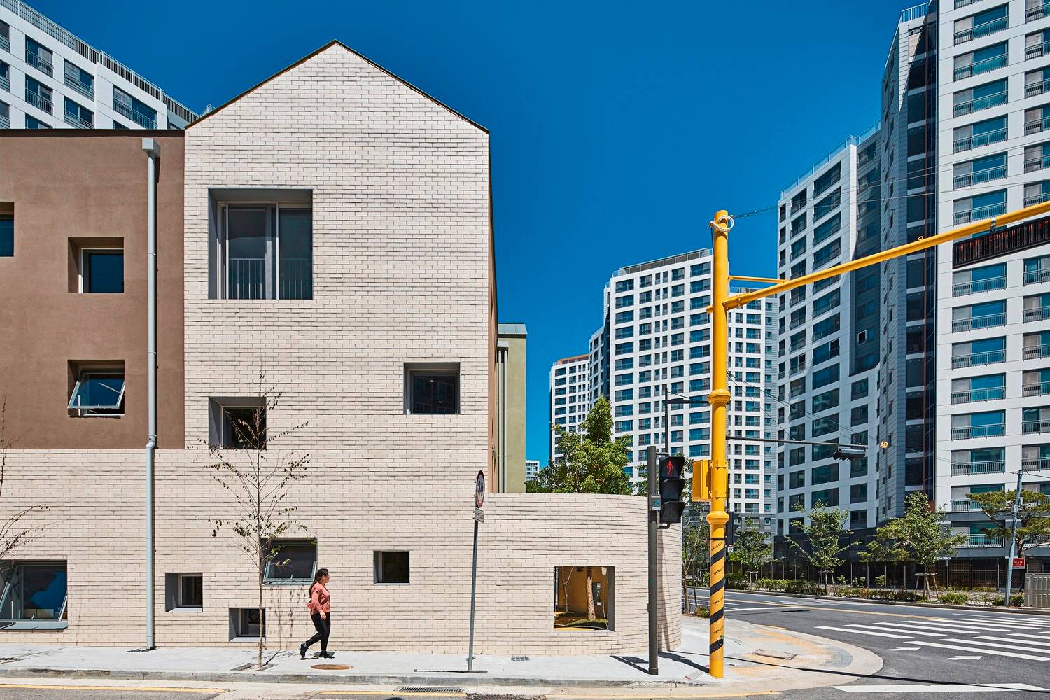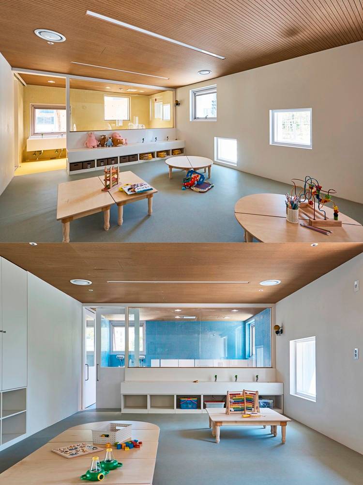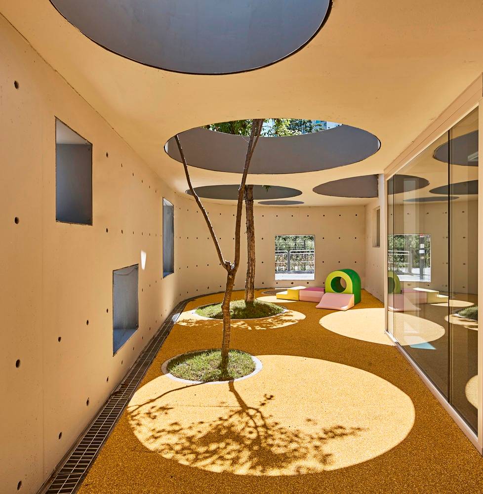 窗戶的設(shè)計(jì)也幫助營(yíng)造了建筑規(guī)模感知度這一概念。它們被設(shè)計(jì)成各種大小和高度,以便所有使用者——從1歲至5歲的兒童到成年人——都能直接看到外面。無論用戶的身高是多少,總有一個(gè)窗口適合。
