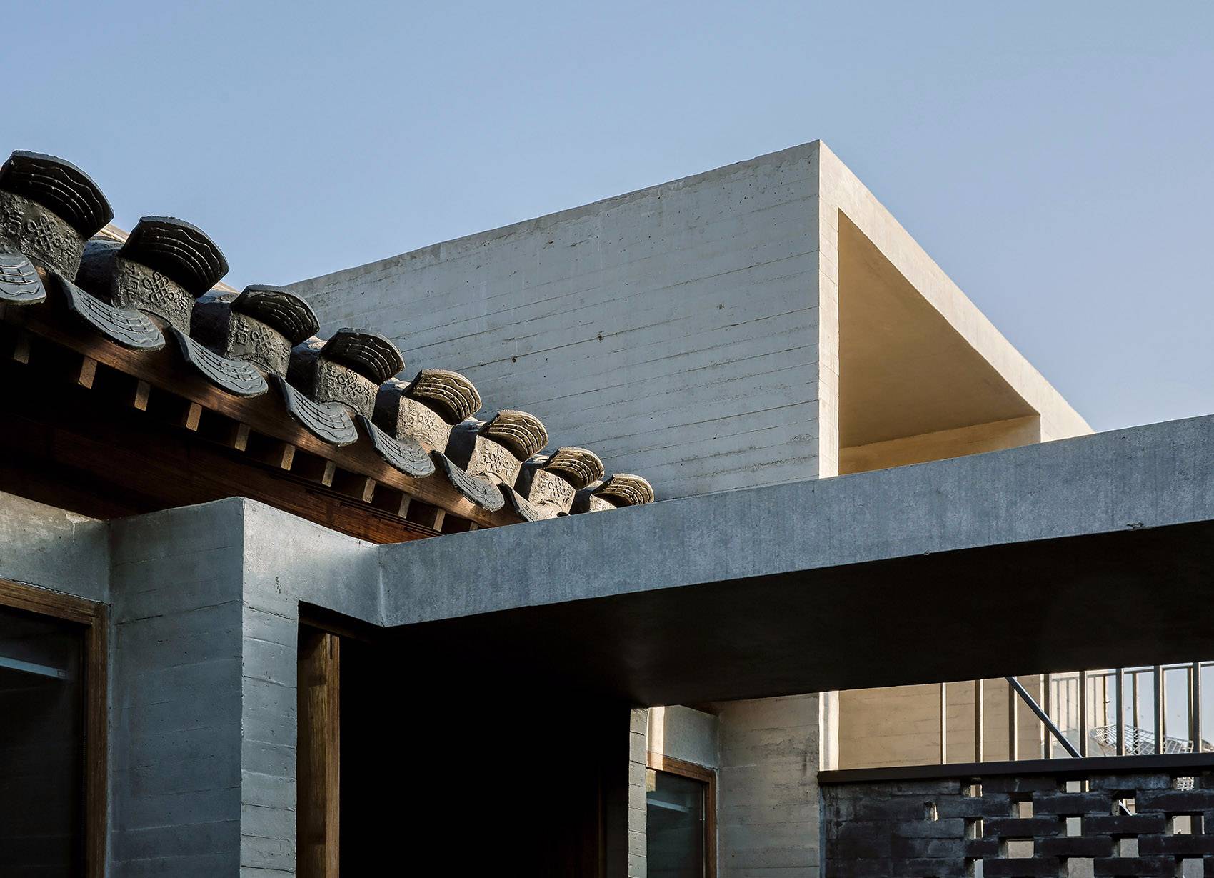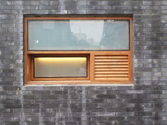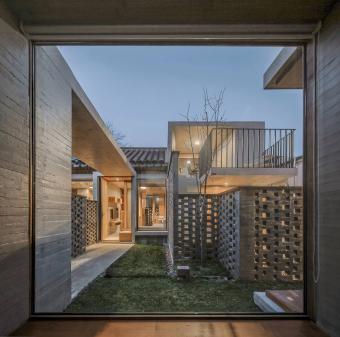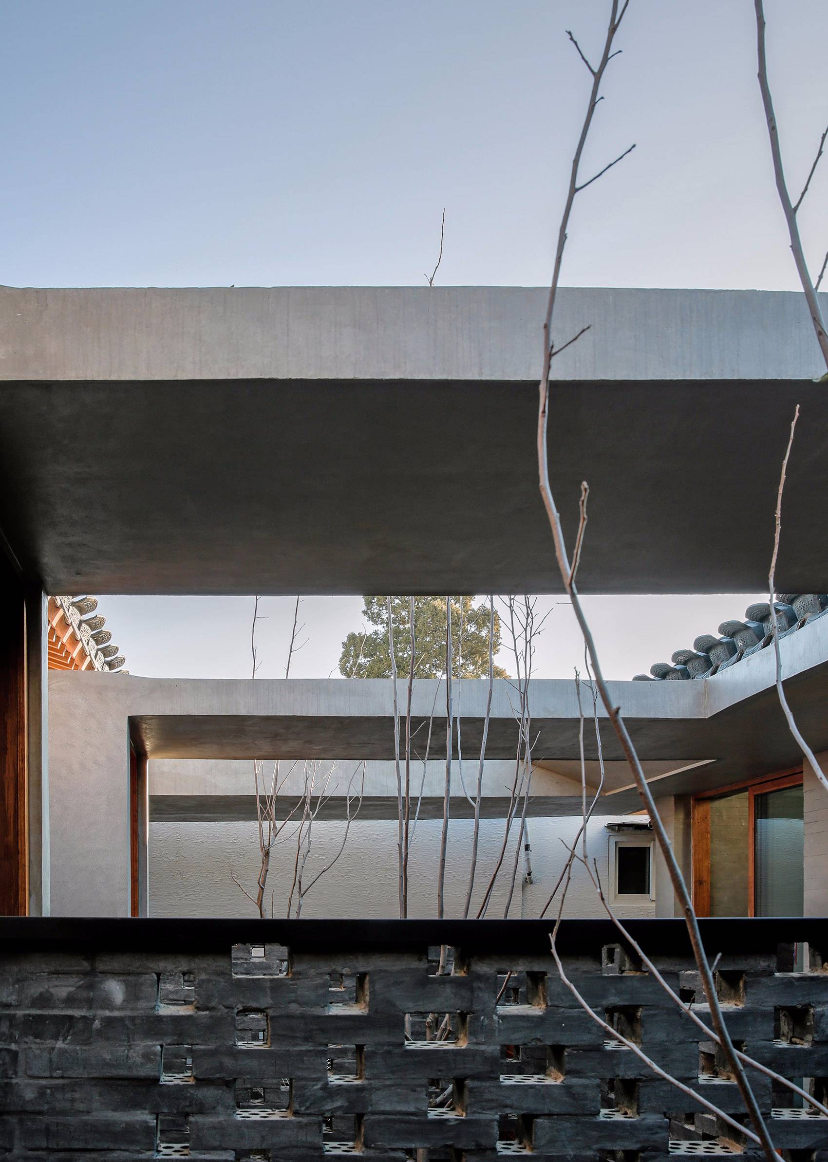 ▼由廊巷看北屋“宅園”:換氣模塊保護(hù)了“宅”的私密,窗成為對(duì)“園”的取景器?蘇圣亮