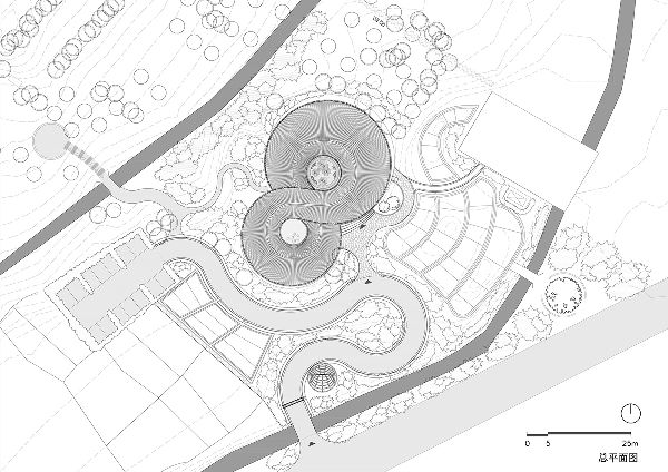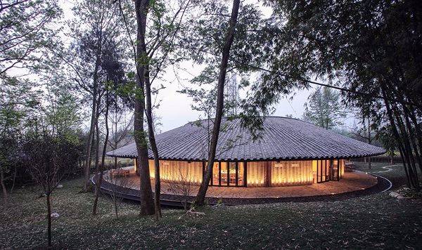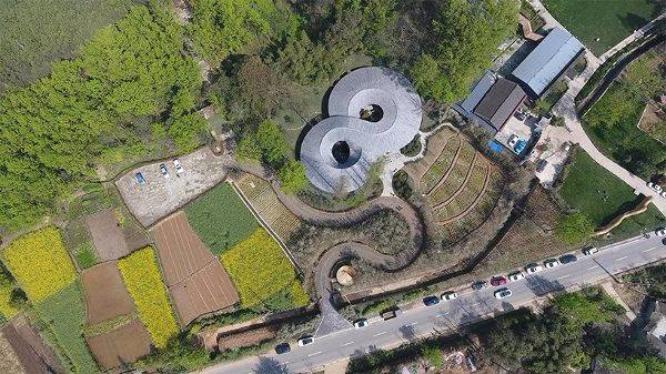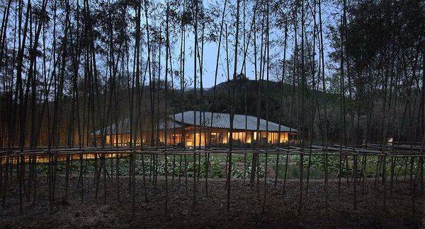 ?要在一個(gè)以竹編傳統(tǒng)聞名的地方設(shè)計(jì)建筑,創(chuàng)盟國際事務(wù)所從宋朝詩人陸游那里汲取靈感。“建筑只能試圖與場地建立一段對話,但是植物屬于場地”,創(chuàng)盟國際事務(wù)所的主創(chuàng)建筑師袁烽說道,“我們盡力保留每一個(gè)事物,讓它們保持原樣”。該設(shè)計(jì)團(tuán)隊(duì)解釋內(nèi)與外、竹子與瓦片、新與舊的關(guān)系意味著在“無限(∞)形”的屋頂下得以體現(xiàn)。