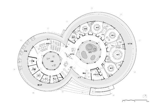 ?建筑的莫比烏斯屋頂由輕盈的預(yù)制鋼結(jié)構(gòu)支撐,使用當(dāng)?shù)爻R姷奶胀镣咂采w表面。“在建筑的屋頂,瓦片猶如像素,通過計(jì)算機(jī)來展示連續(xù)屋頂微妙而復(fù)雜的幾何形體,”建筑師繼續(xù)解釋說,“通過這種方式瓦片成為連接本土建造語言和抽象幾何形體的中介?!币贿M(jìn)入建筑,映入眼簾的就是兩個(gè)院子,每個(gè)院子由舒展的屋頂曲線定義邊界。開放空間創(chuàng)造出一種幽靜感,在這里游客可以感受季節(jié)的變遷。同時(shí),原有的花園的位置和功能被完全保留下來。