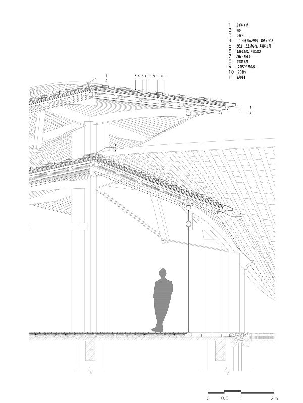?為了在不到七周半的時(shí)間內(nèi)完成該項(xiàng)目施工,建筑師使用了參數(shù)化預(yù)制木結(jié)構(gòu)。這保證了團(tuán)隊(duì)能夠加快建造速度的同時(shí)減少浪費(fèi)?!拔覀冊谶@個(gè)項(xiàng)目的實(shí)踐中,多年的參數(shù)化木構(gòu)工藝試驗(yàn)以及預(yù)制產(chǎn)業(yè)化研究,發(fā)揮了很大的作用,”建筑師說道。
