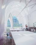 ?為了縮短施工時(shí)間,扎哈事務(wù)所建議將當(dāng)?shù)貍鹘y(tǒng)的現(xiàn)場混凝土施工與熱線切割泡沫建材模板的新技術(shù)相結(jié)合,由工業(yè)機(jī)器人在現(xiàn)場制備出桶狀和拋物線形狀的模具。這也同時(shí)減少運(yùn)輸?shù)綄W(xué)校地處的偏遠(yuǎn)地區(qū)的建筑材料的數(shù)量。拱形的模數(shù)化讓模板重復(fù)使用,這也加快了施工進(jìn)度并降低了造價(jià)。
